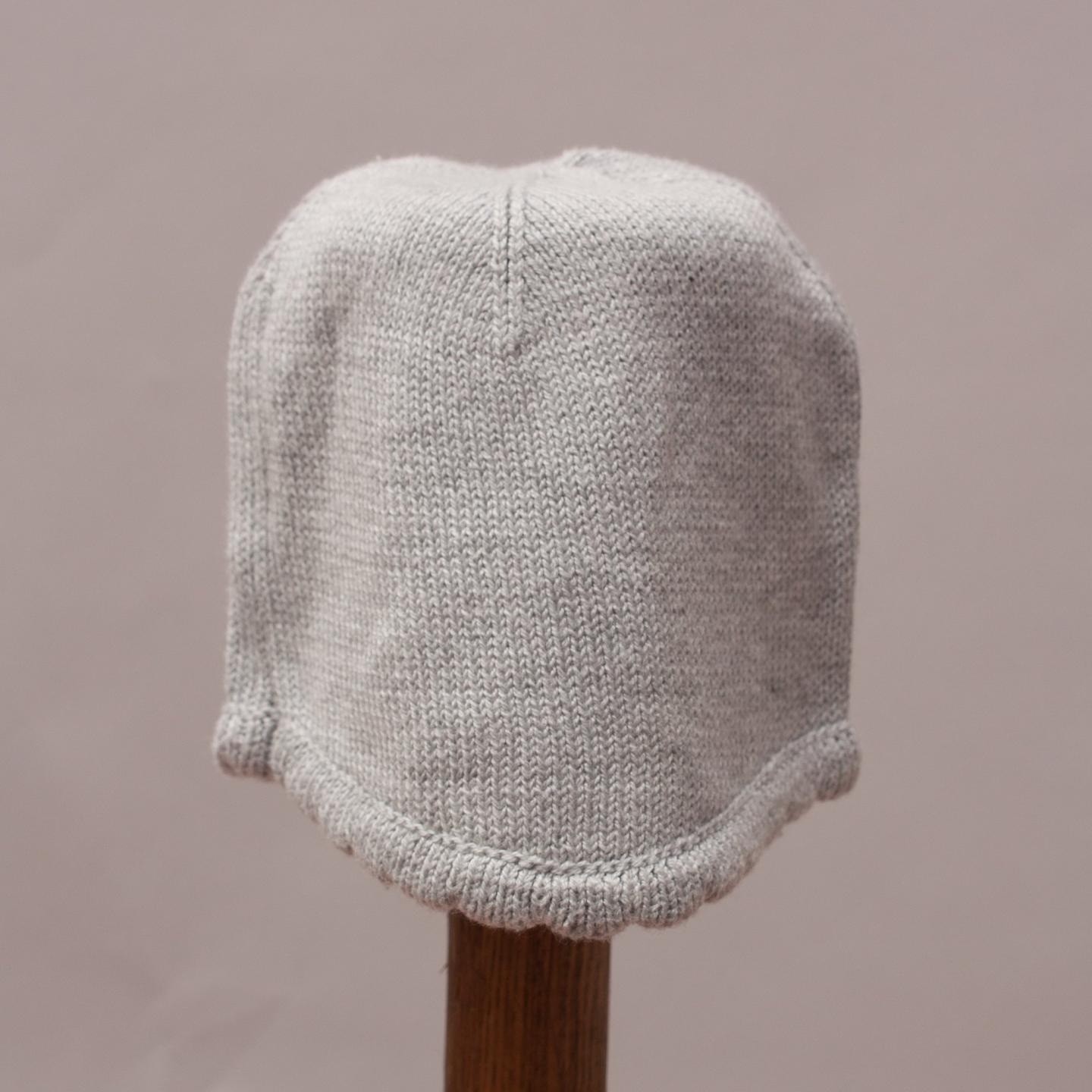 Grey knitted beanie with scalloped edge detail
