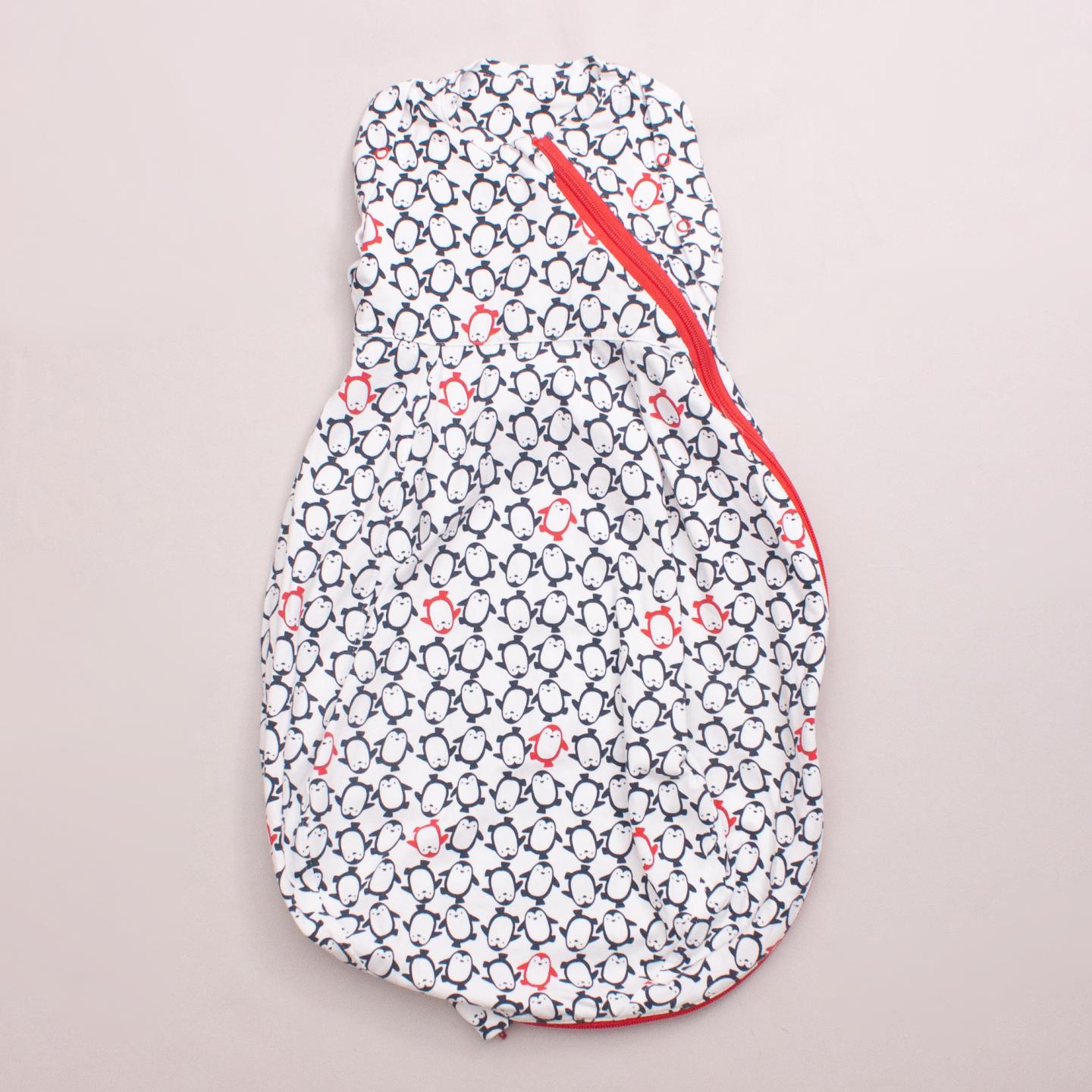 GroBag white, red and black penguin patterned sleep sack with snap button arms and zip up closure