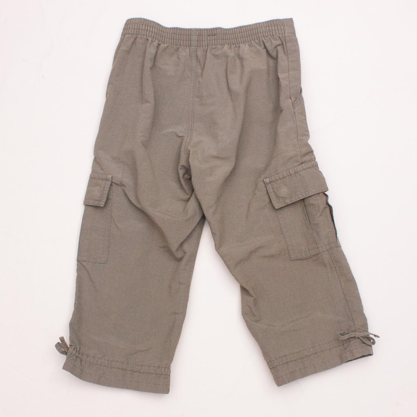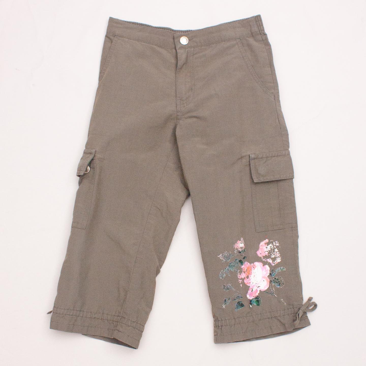 Guess khaki cargo pants with multiple pockets, printed flower detail, tie cuffs detail and elastic waistband