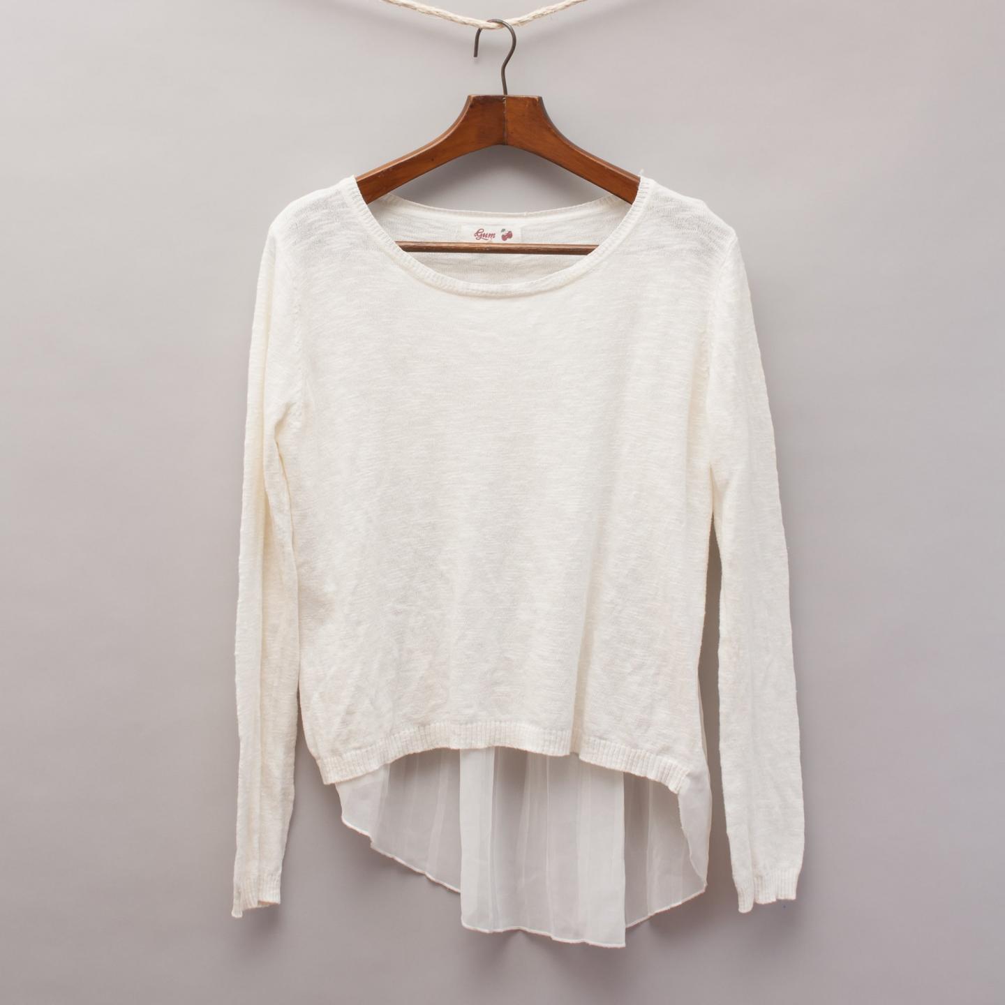 Gumboots cream light weight jumper with sheer pleated back panel, semi see through all over with wide neckline