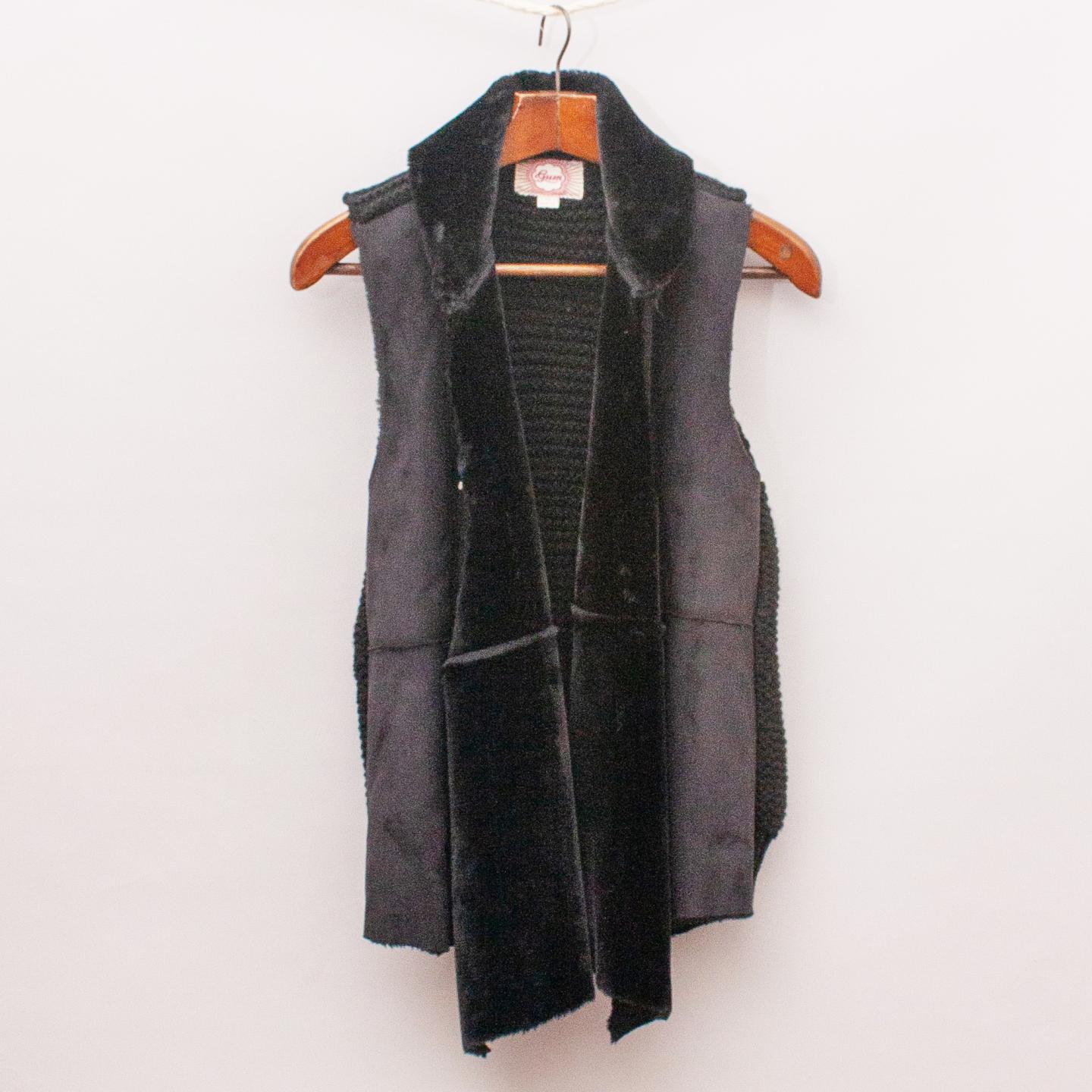 Gumboots black faux fur and faux suede vest with contrasting knit back and rolled collar
