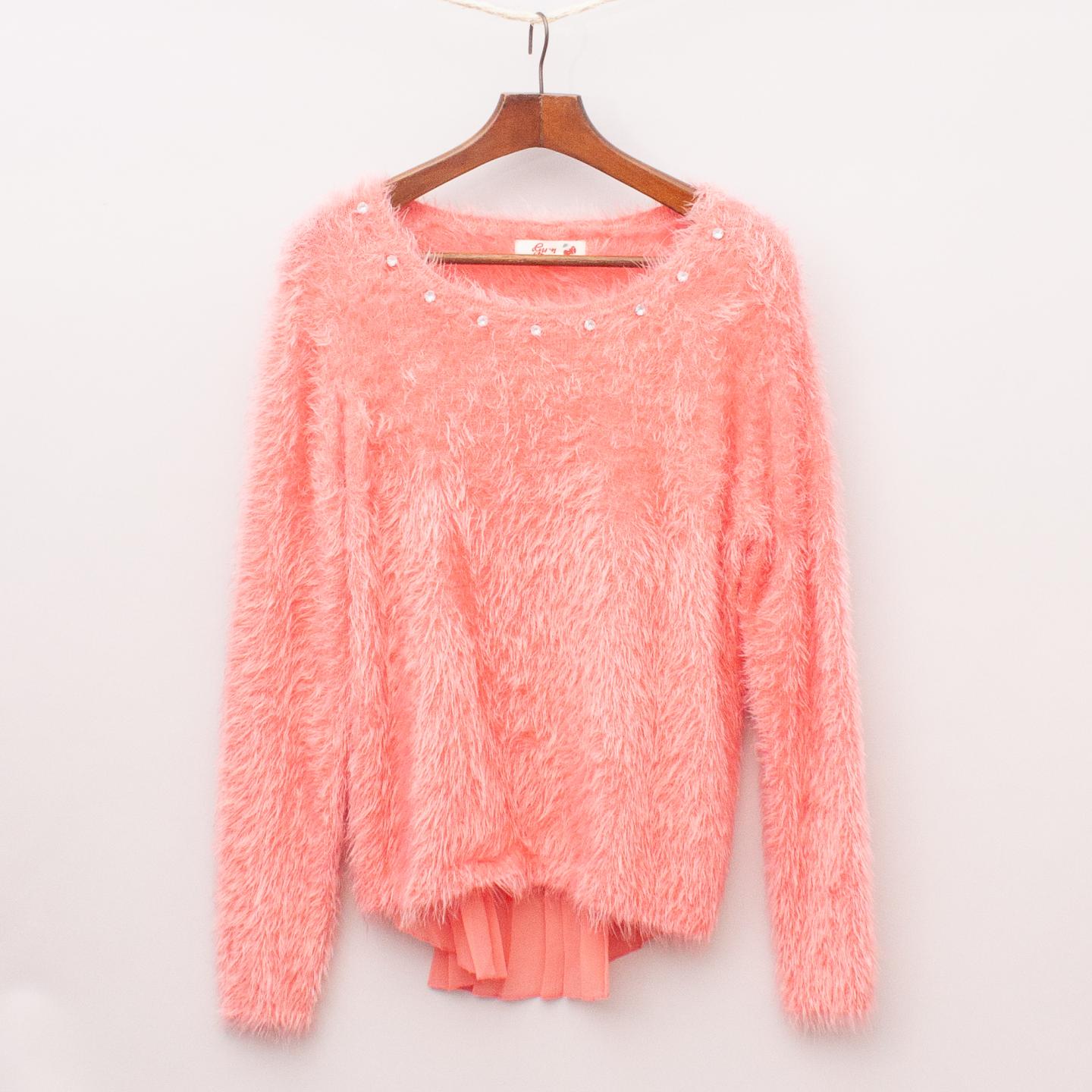 Gumboots orange soft fuzzy jumper with diamante neckline *Viscose, Nylon & Polyester blend