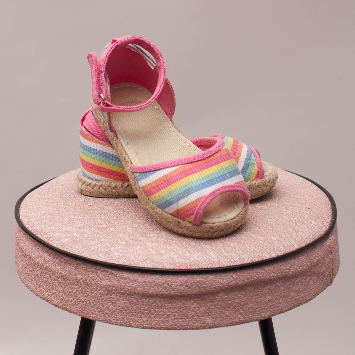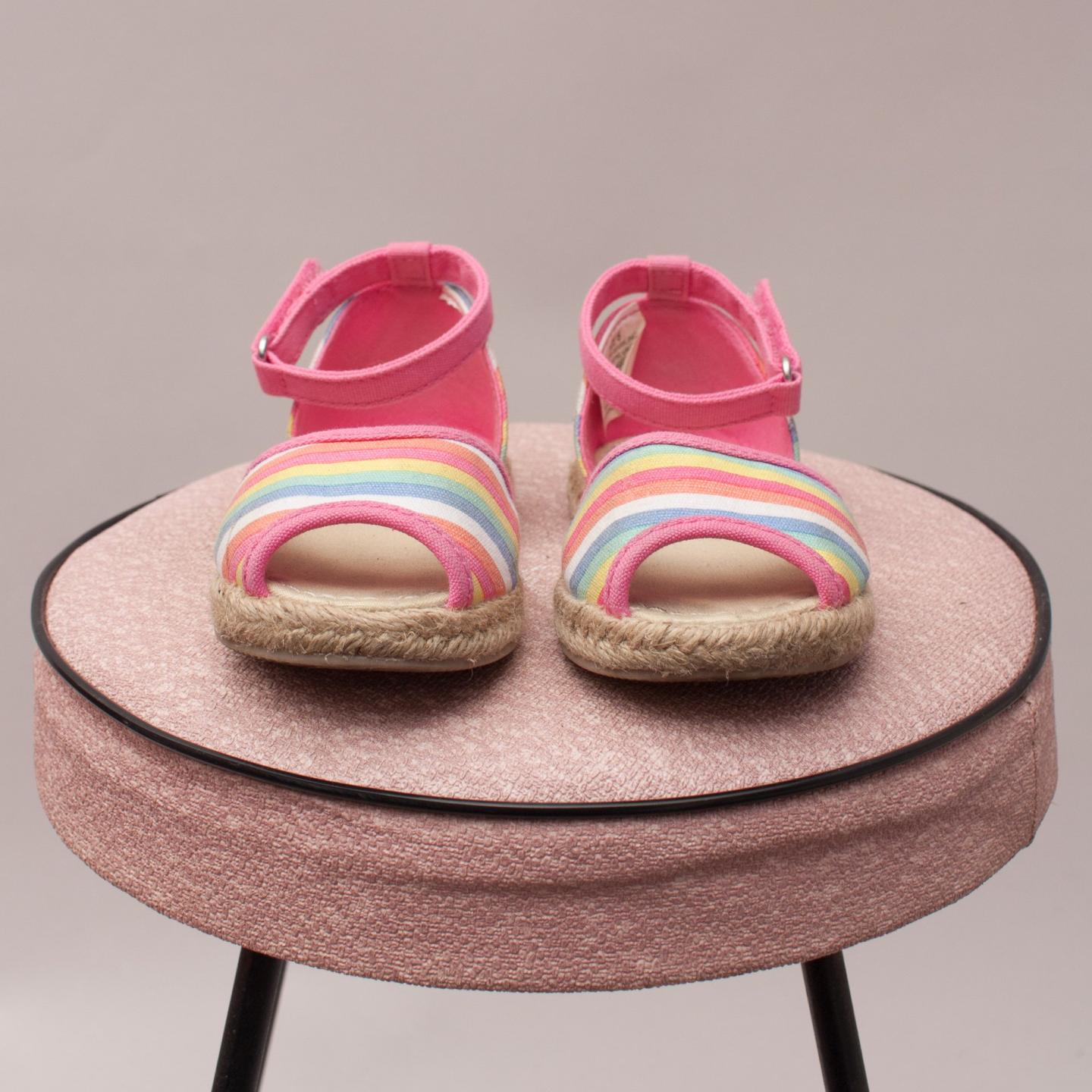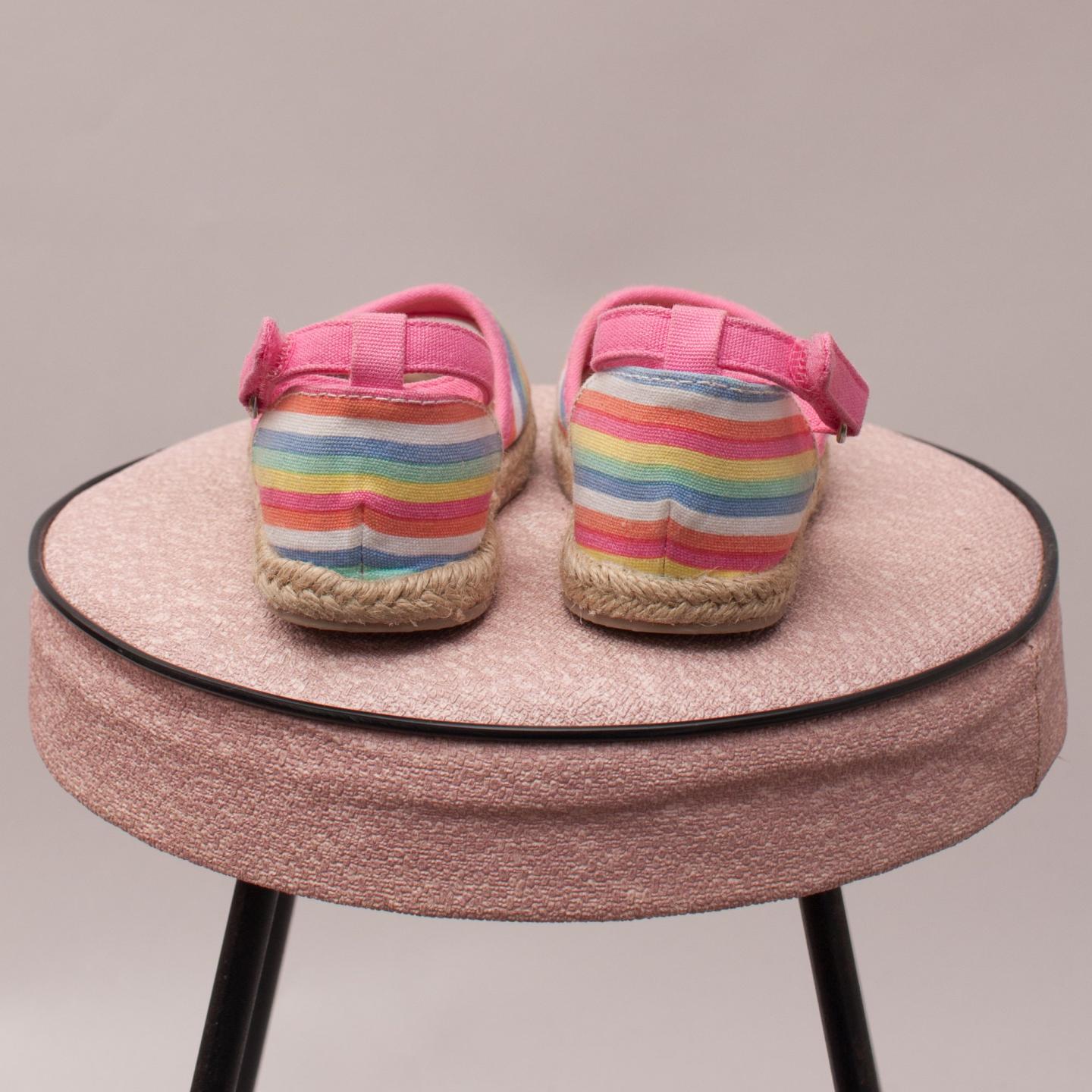 Gymboree multi coloured striped espadrilles with pink velcro ankle strap - Size US 6 (0-12Mths Approx.)