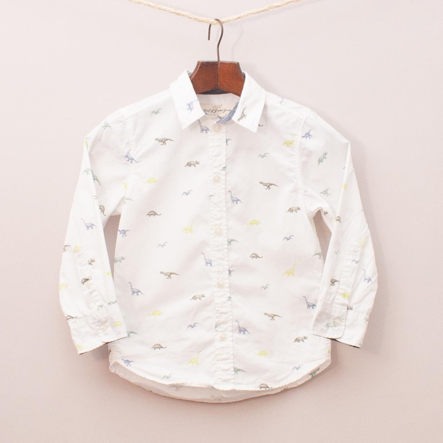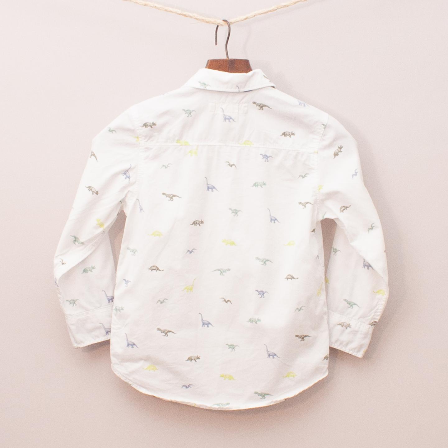 H&M white long sleeve shirt with dinosaur print throughout and full button down front *100% Cotton