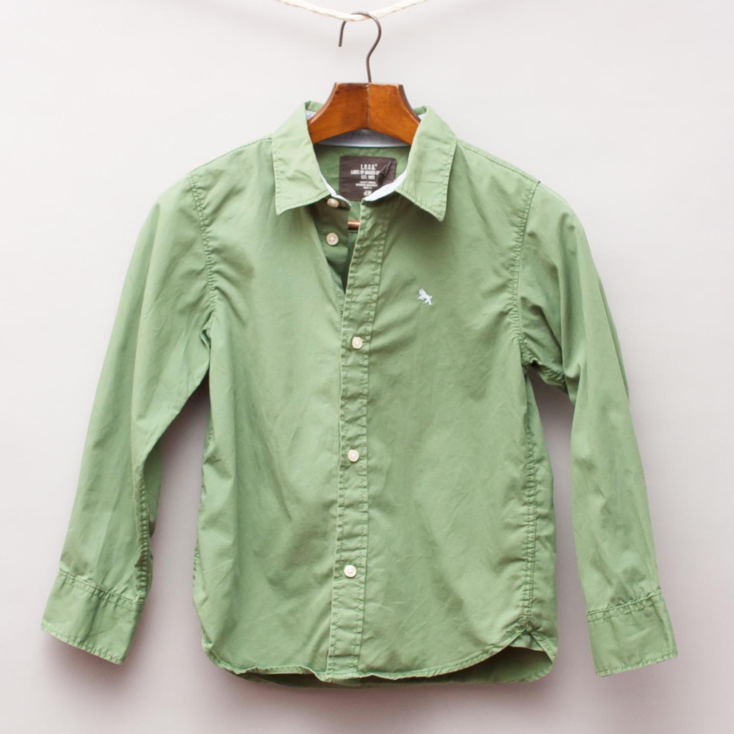 H&M green button down shirt with small embroidered logo on front
