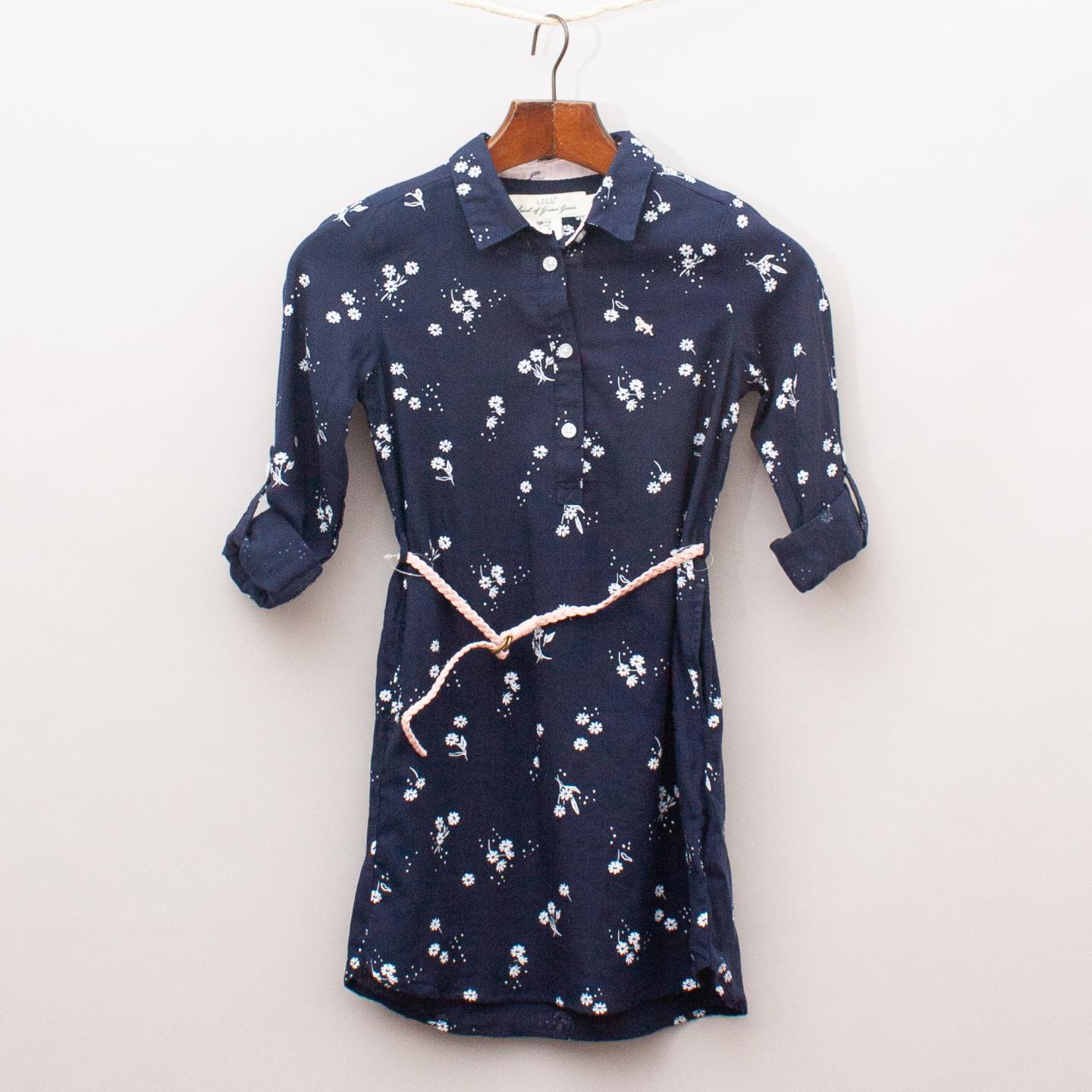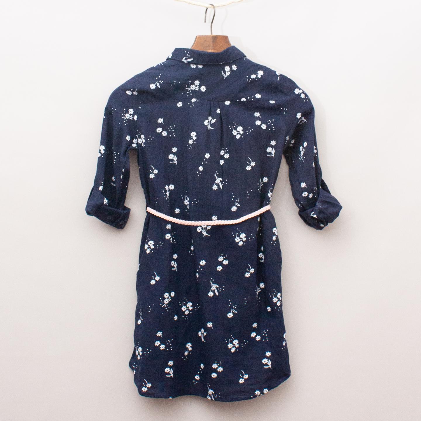 H&M "brand new with tags" navy blue and white floral patterned shirt dress with pink plaited belt and full button down front