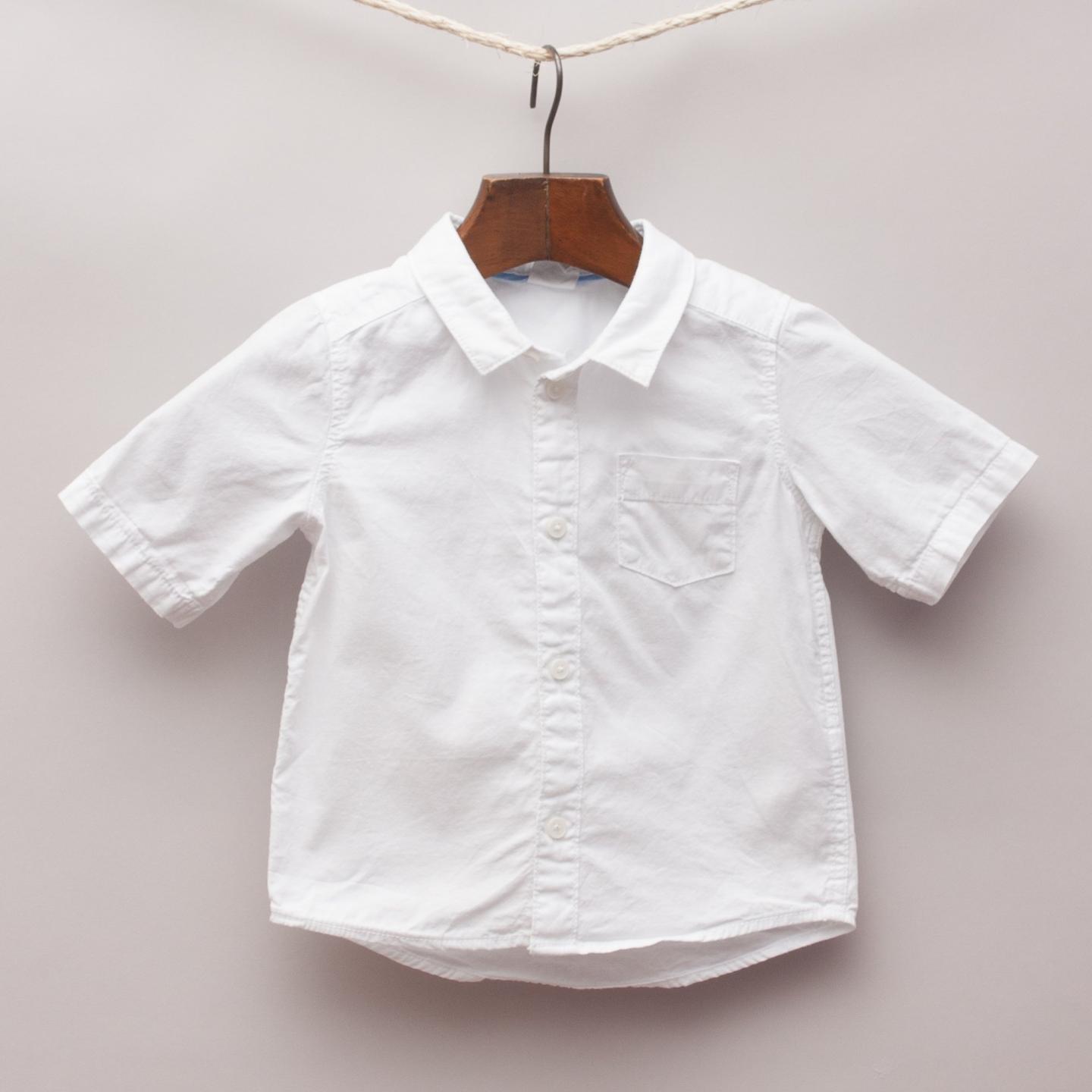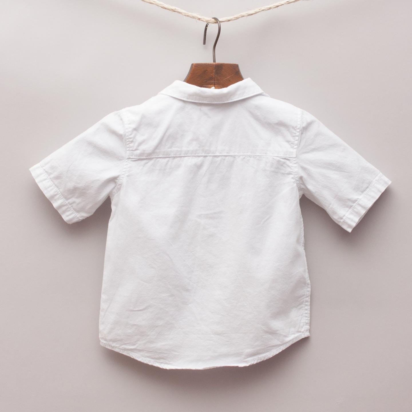 H&M plain white short sleeve shirt with single front pocket and full button down front