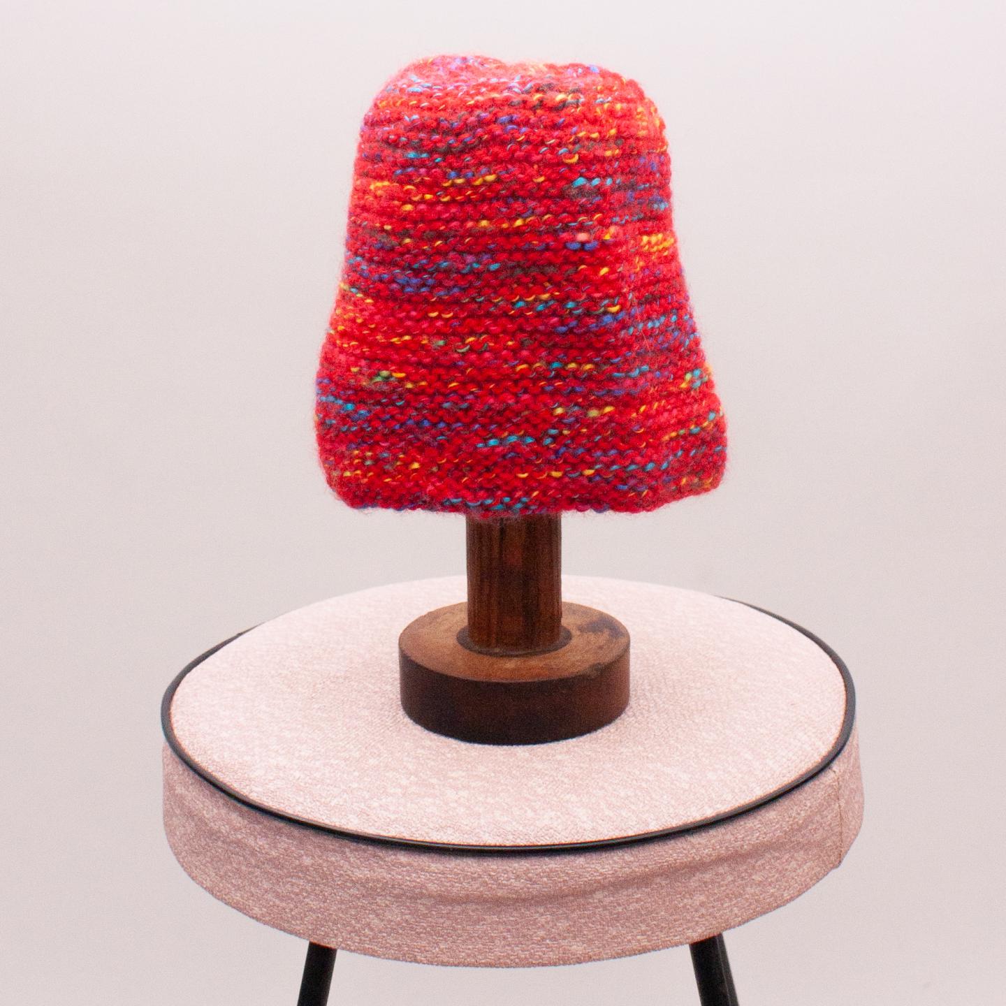 Hand Knitted red and multicolour beanie - Size 32cm approx. circumference