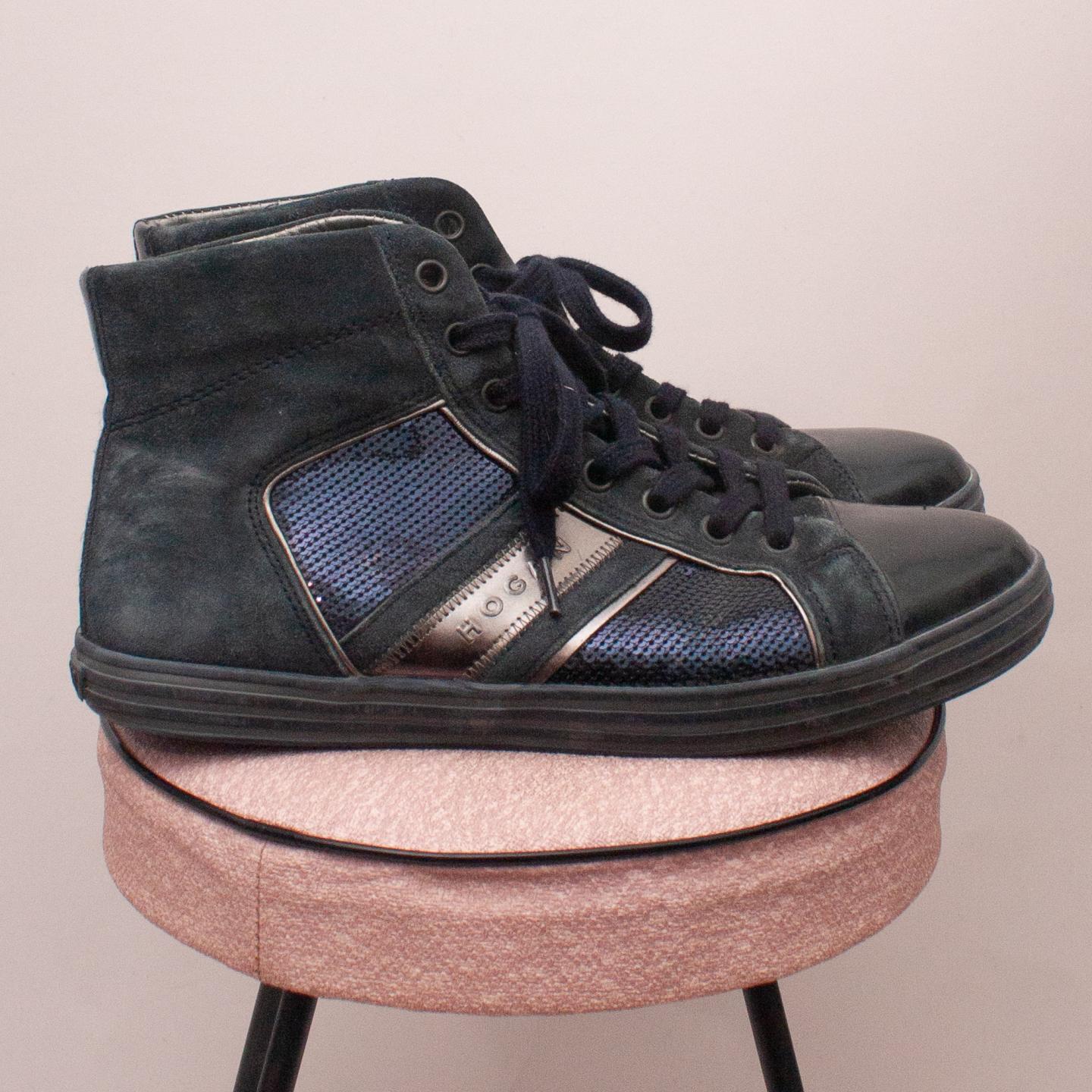 Hogan leather and suede boots with sequin detail, navy blue laces and strudy rubber soles - Size EU 40 (Age 12 approx.)