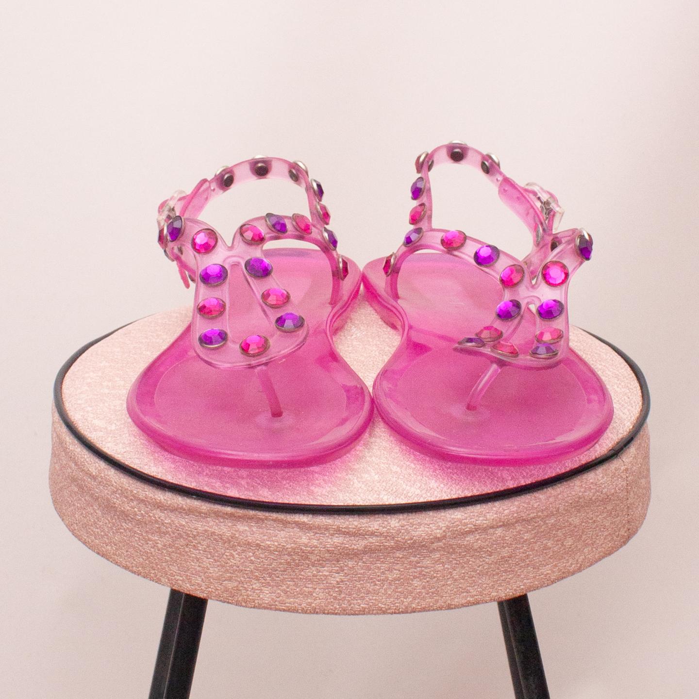 Holster purple and diamante embellished sandals with single buckle strap and thin clear soles - Size EU 34 (Age 7 approx.)