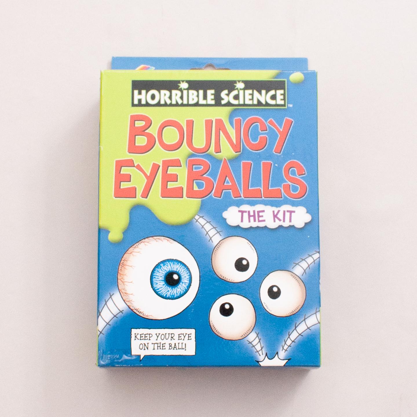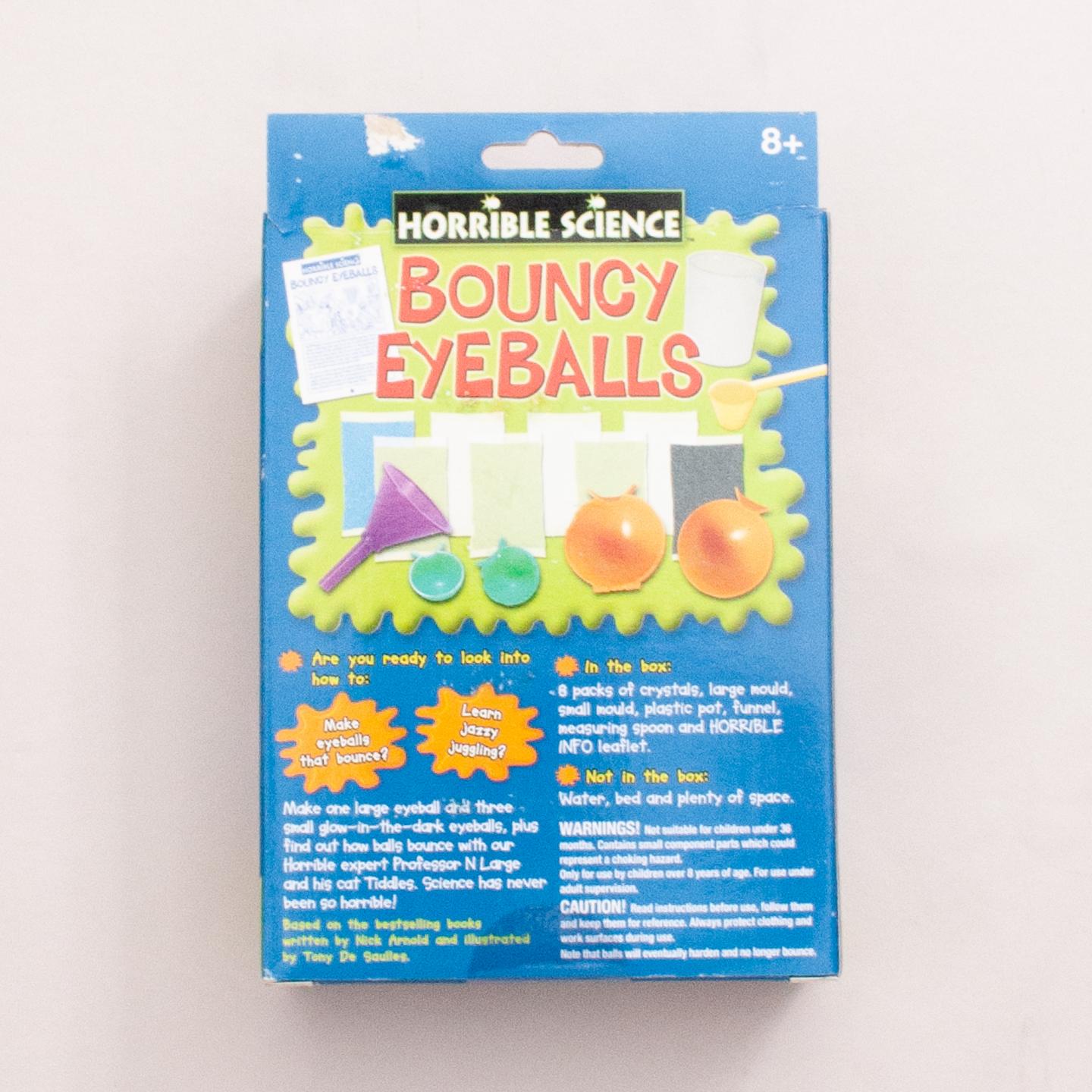 Horrible Science Bouncy Eyeballs kit includes; 8 packs of crystals, large mould, small mould, plastic pot, funnel, measuring spoon and horrible info leaflet - Suitable for 8+