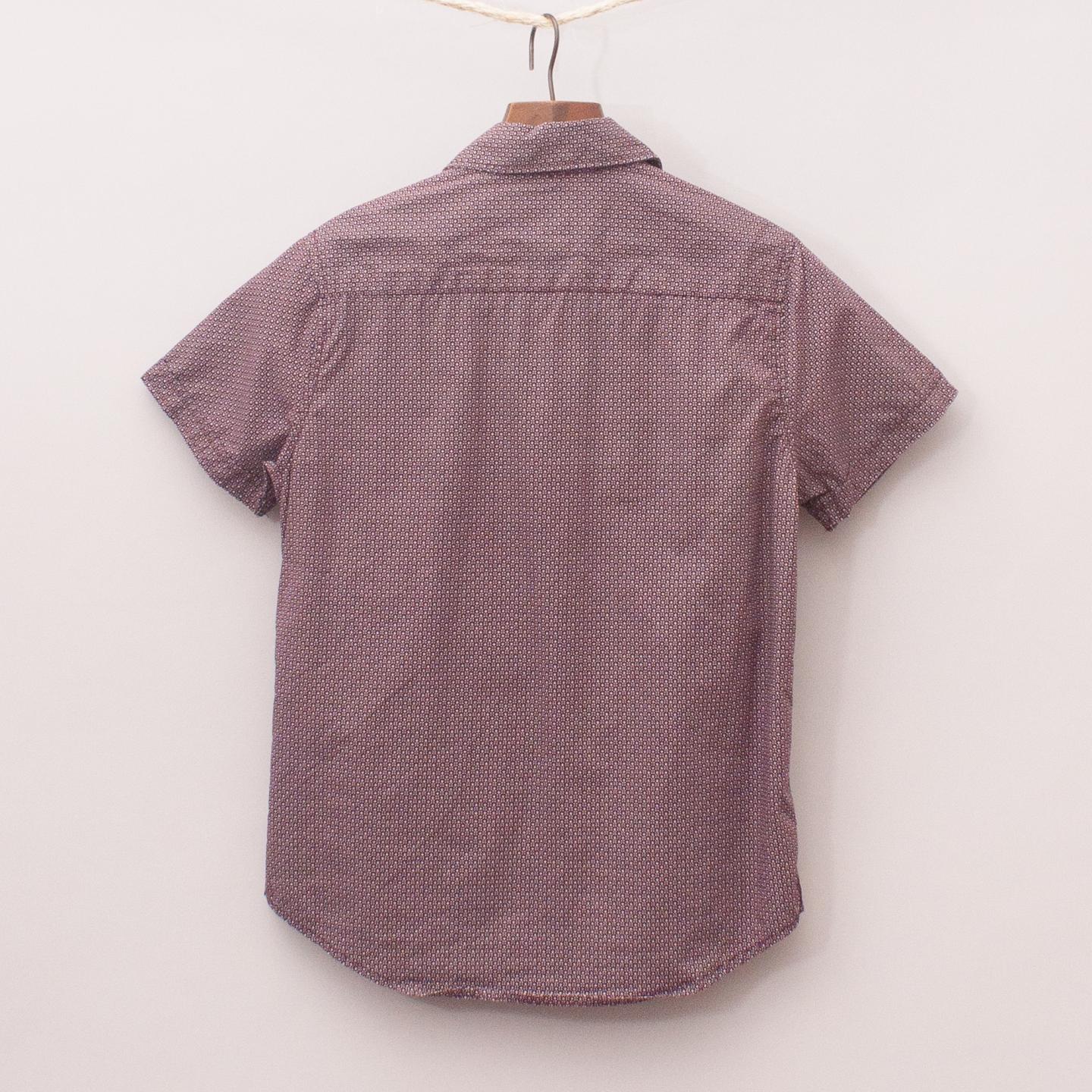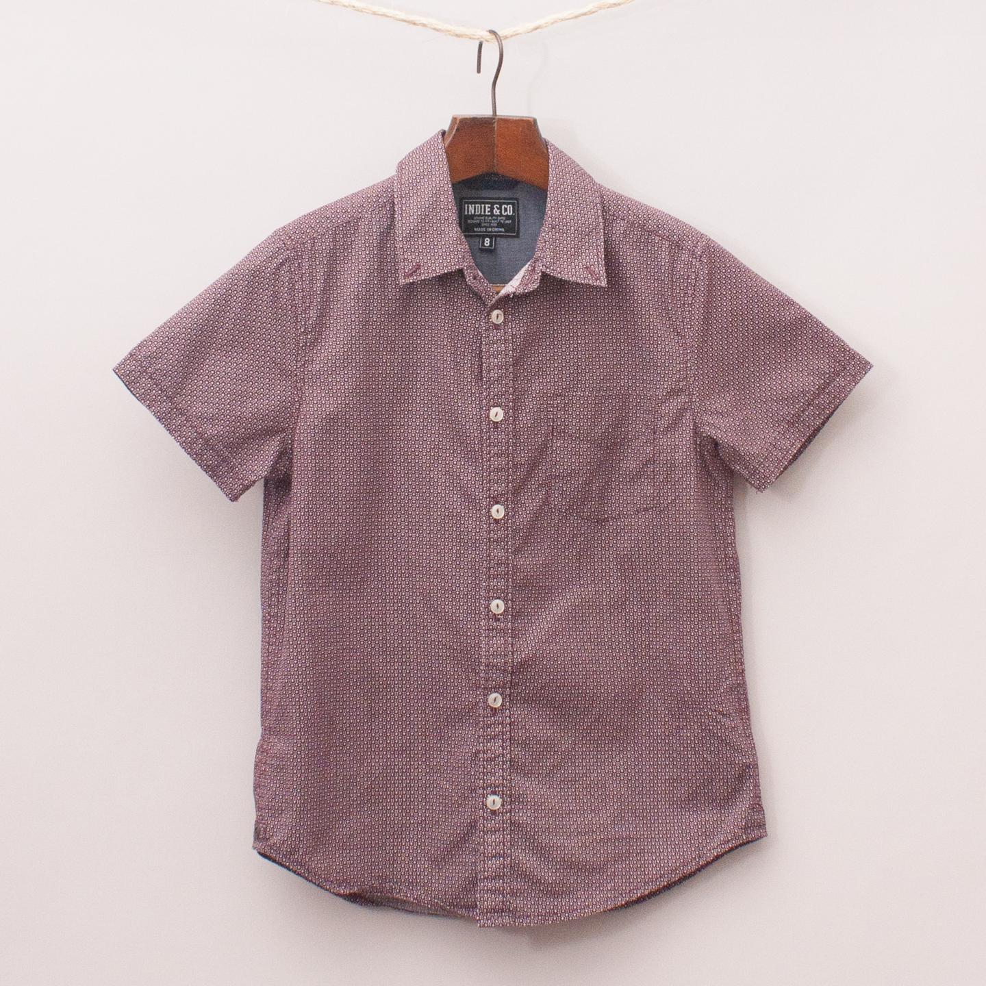 Indie purple and white patterned short sleeve shirt with single front pocket and full button down front *100% Cotton