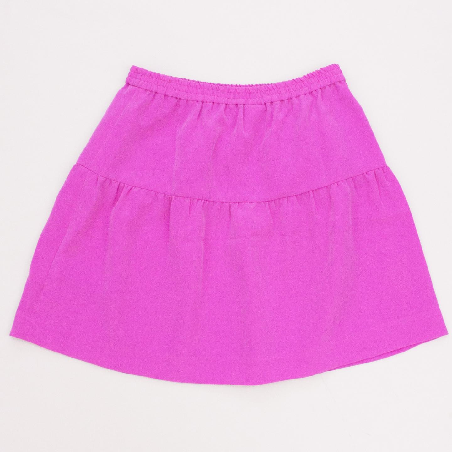 J Crew fuchsia coloured skirt with gathered layers and elastic waistband