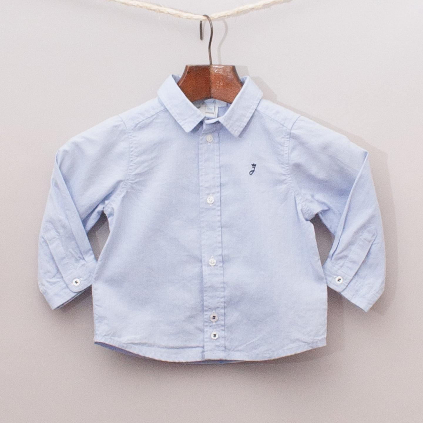 Jacadi "brand new with tags" plain blue long sleeve shirt with full button down front and small embroidered logo on the front