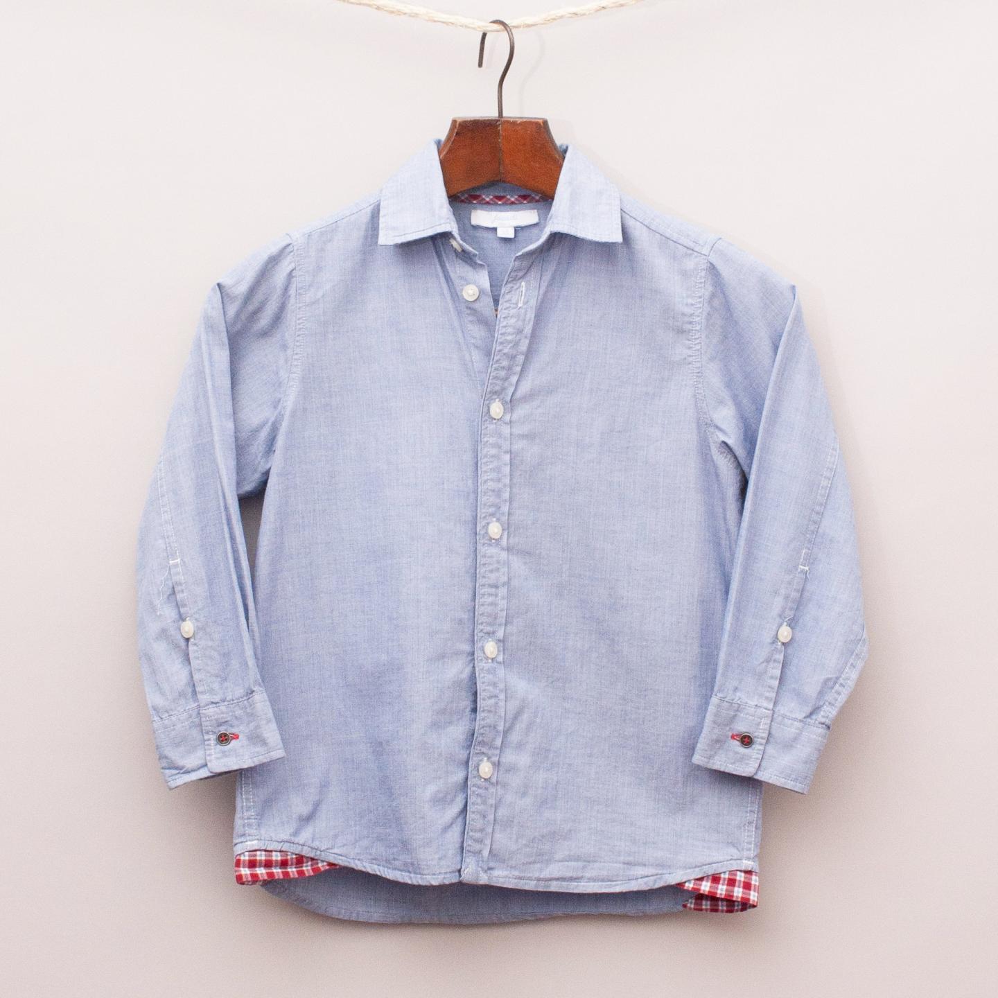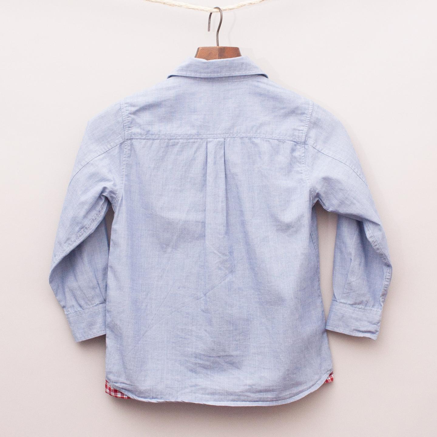 Jacadi light blue shirt with red check detail at the hemline and full button down front