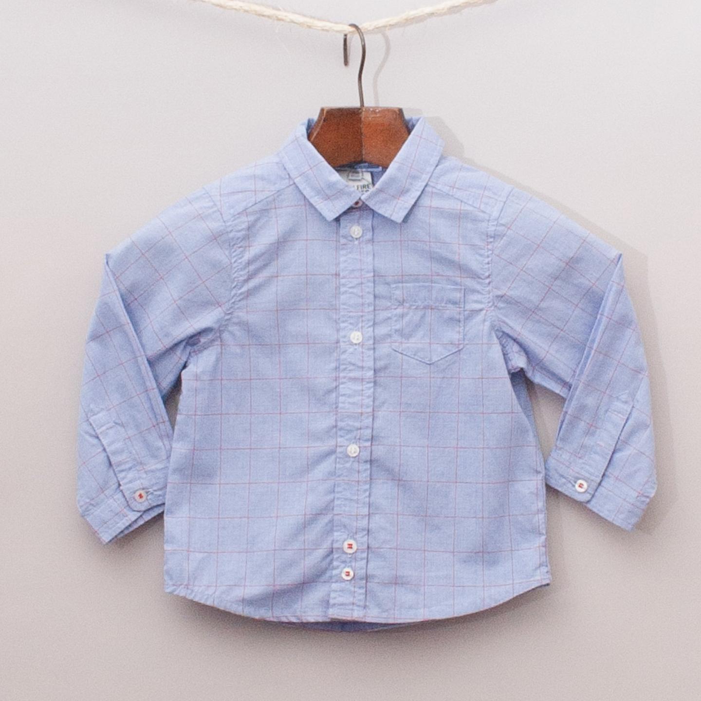 Jacadi "brand new with tags" blue, red and white check long sleeve shirt with single front pocket and full button down front