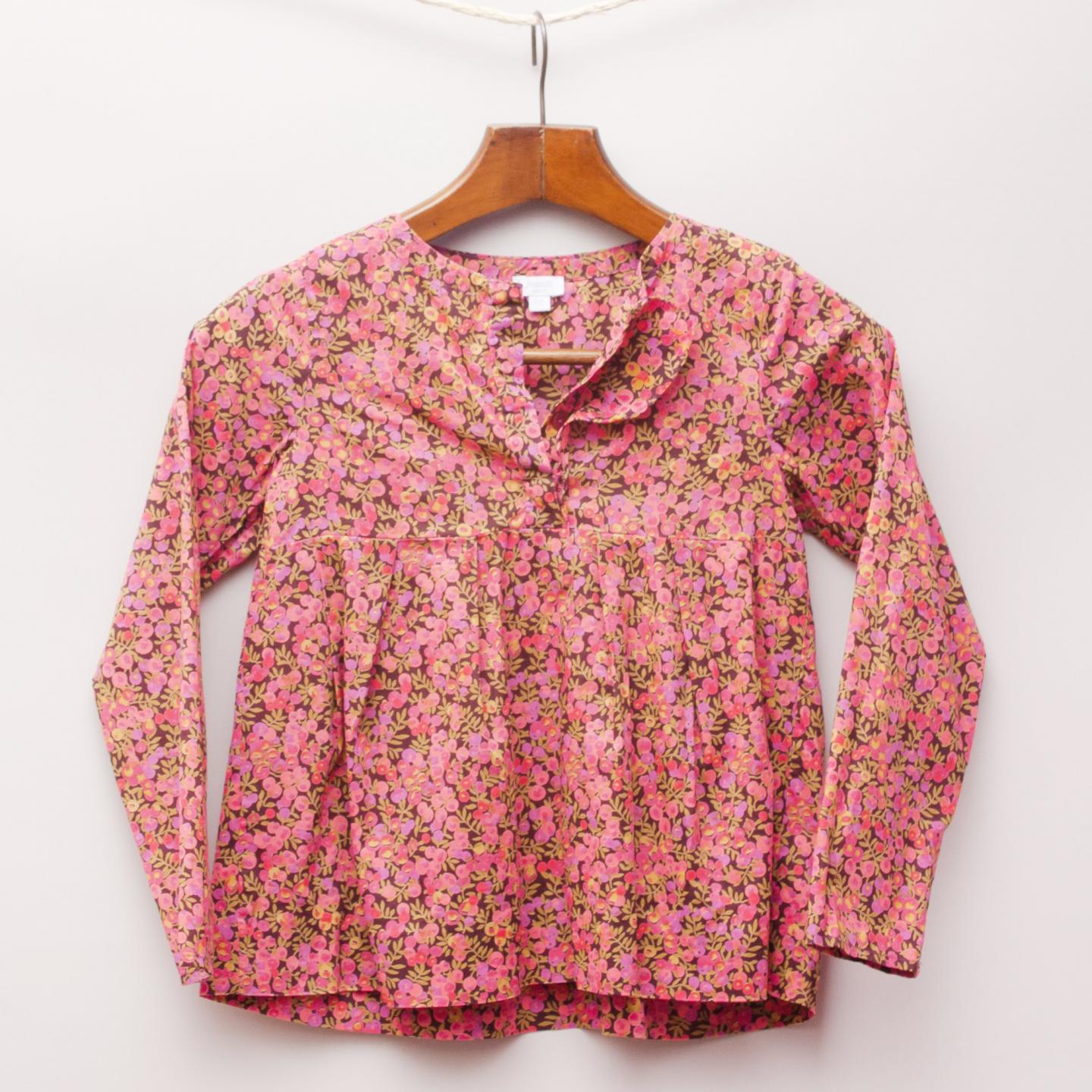 Jacadi berry toned blouse with floral print throughout, pleated waist and three button up front