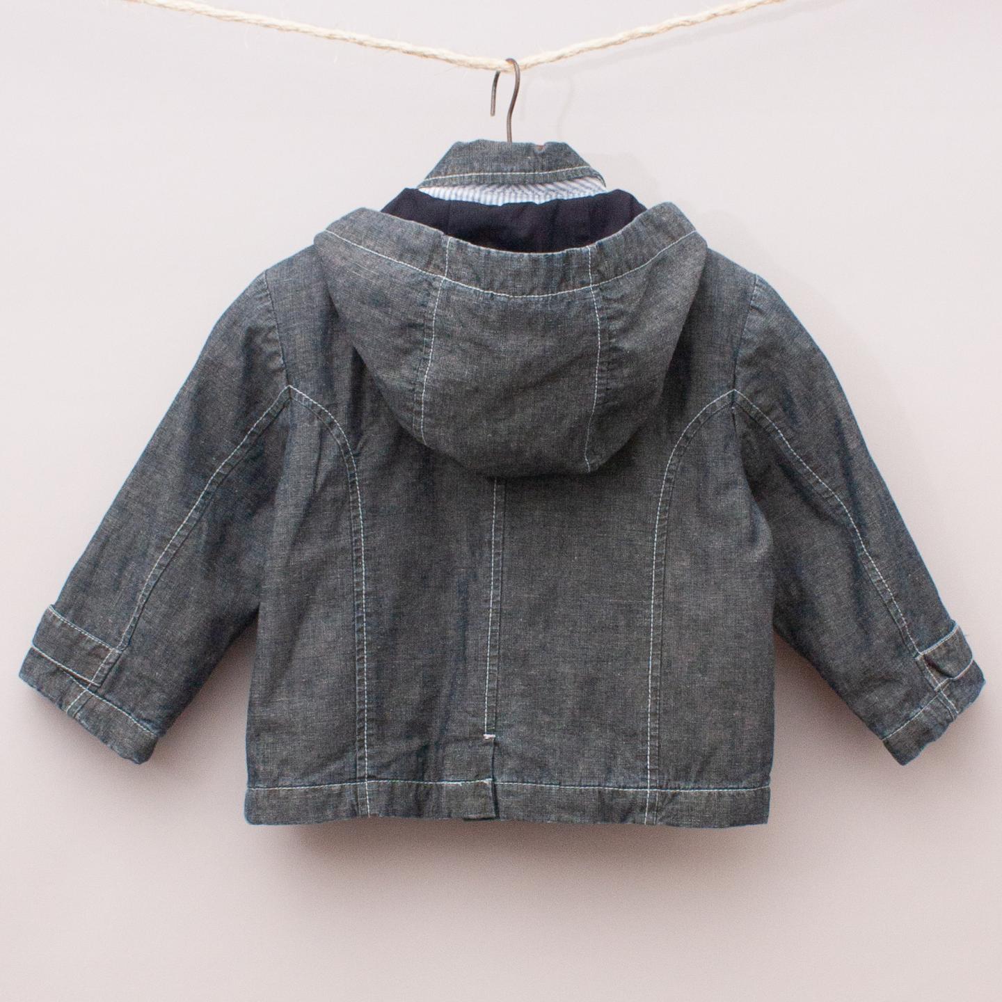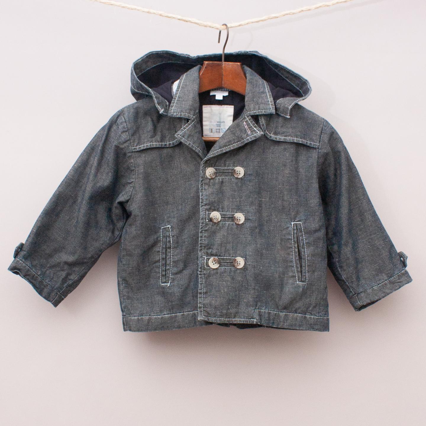 Jacadi grey hooded jacket with two front pockets, double button closure and quilted lining