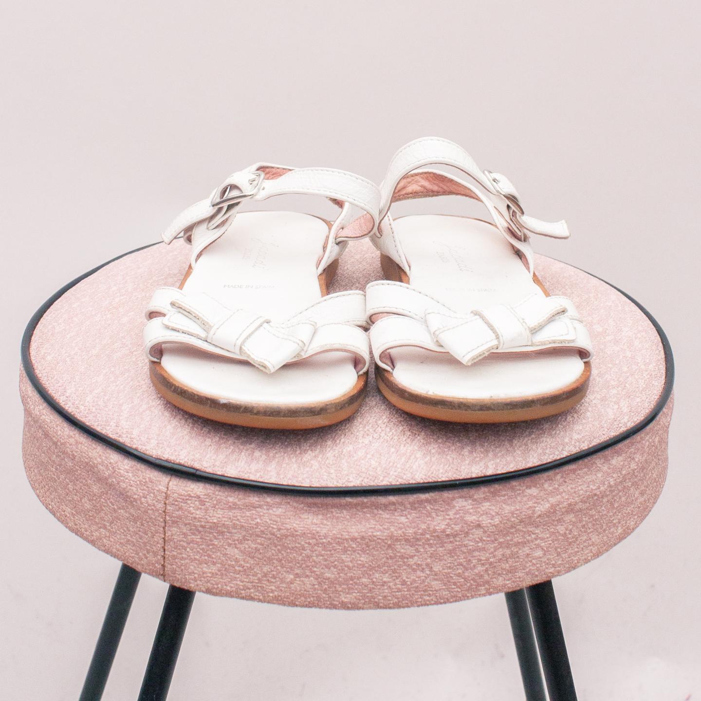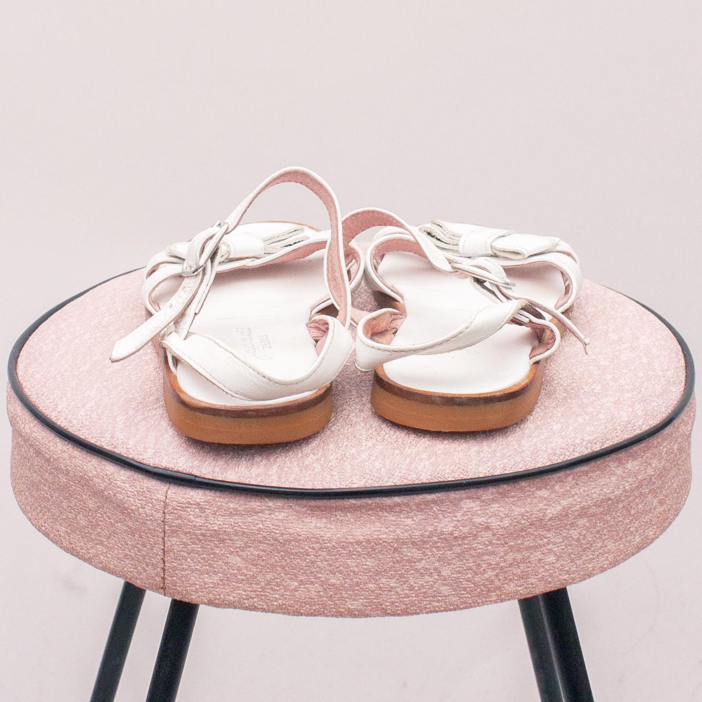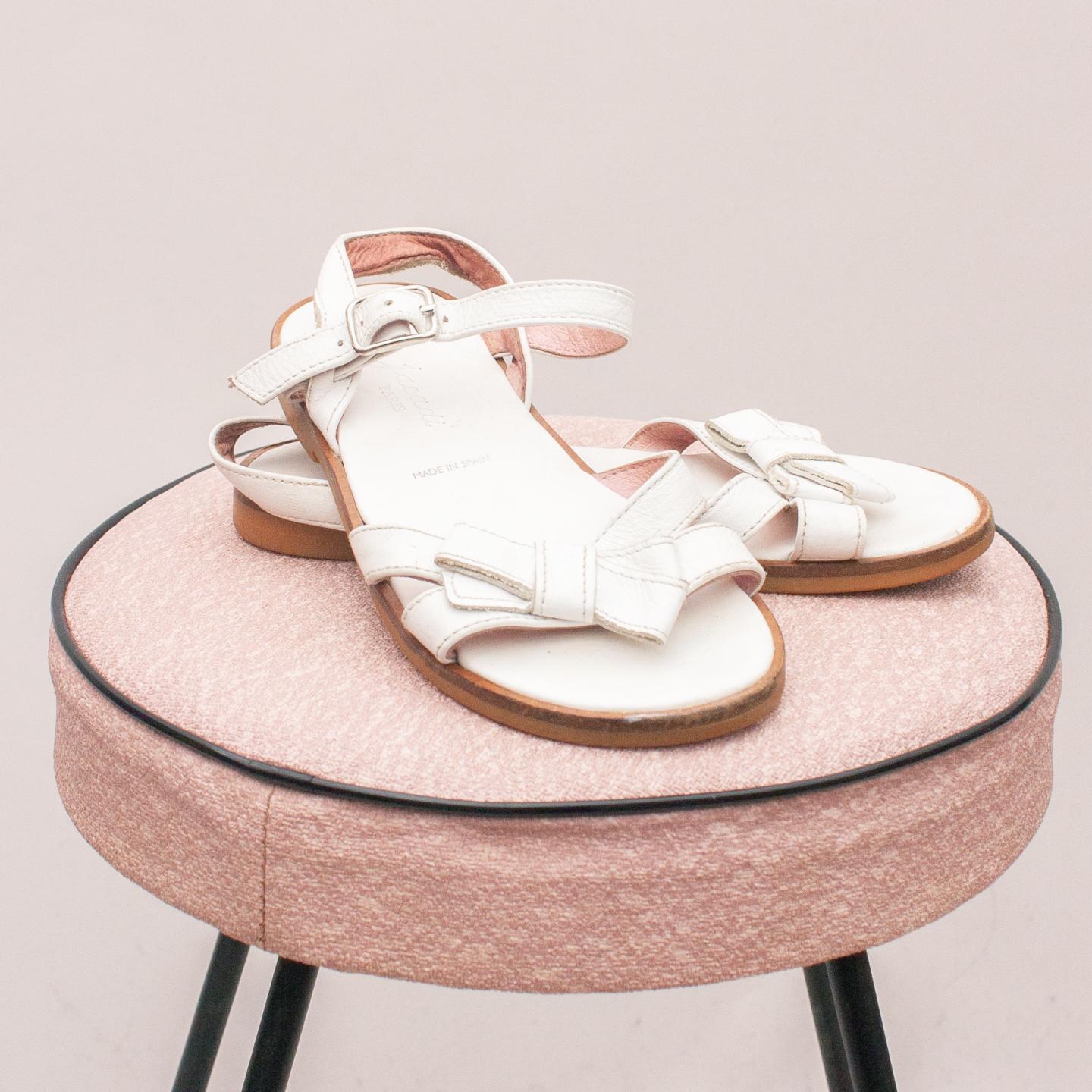Jacadi white leather sandals with bow detail on the front, single buckle strap and think rubber sole - Size EU 27 (Age 3 approx.)