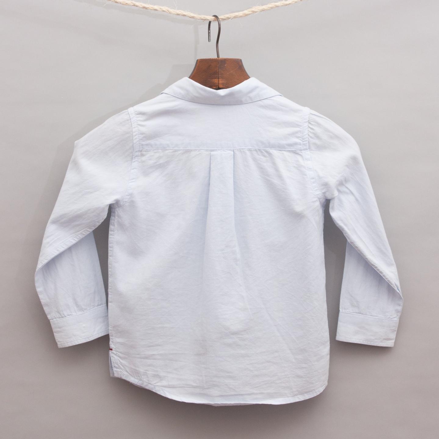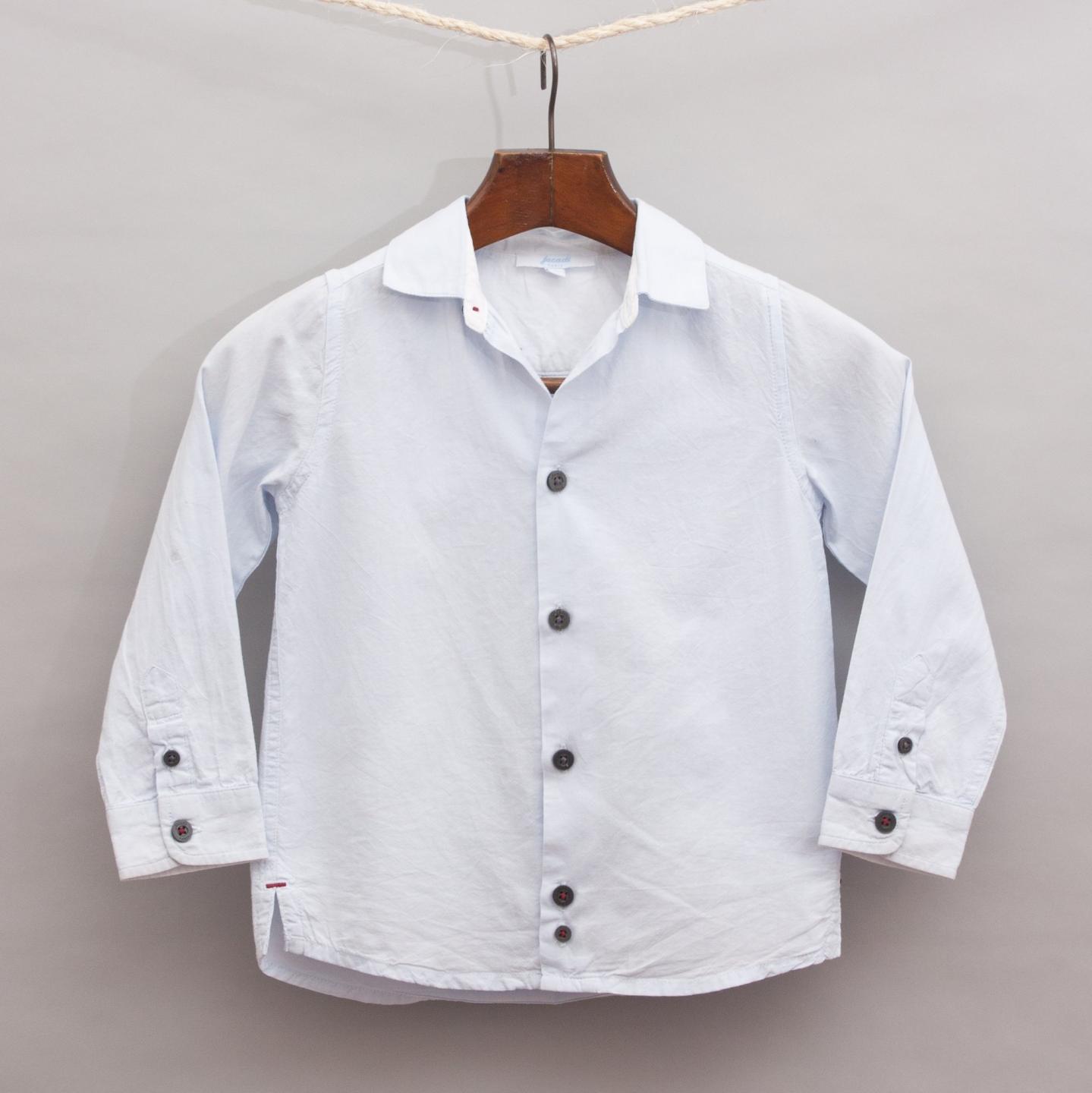 Jacadi plain light blue shirt with navy blue buttons throughout