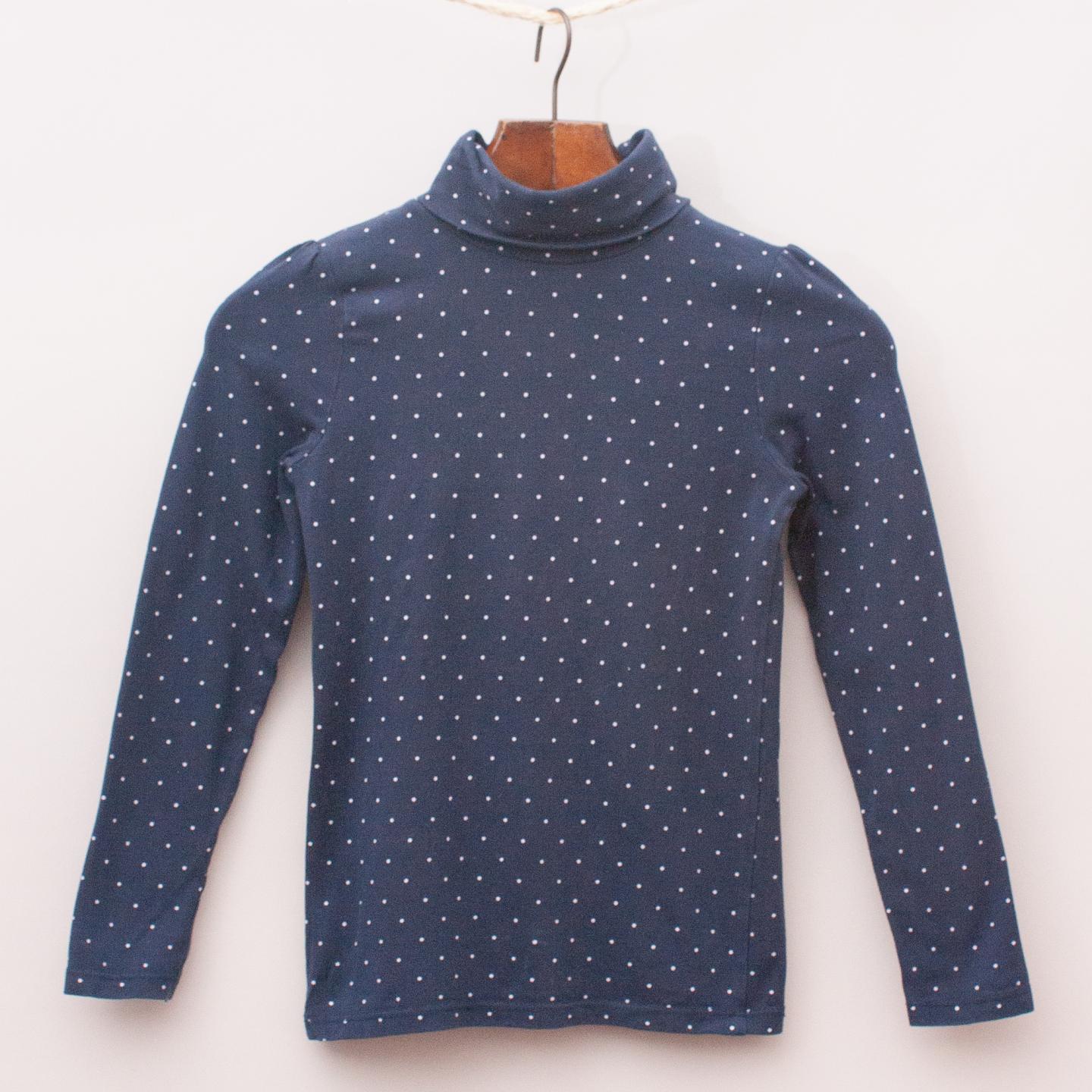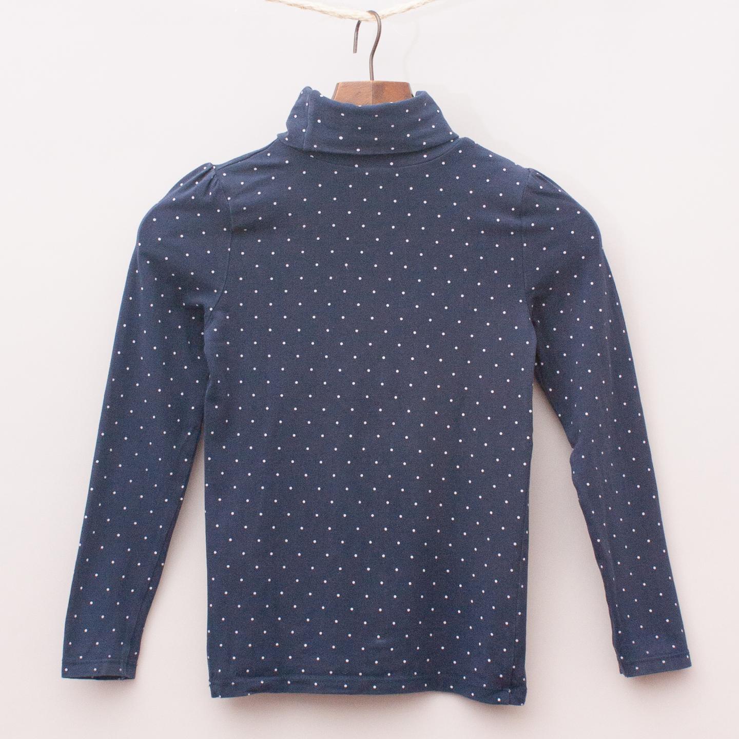 Jacadi navy blue and polka dot patterned long sleeve top with rolled neckline *95% Cotton, 5% Elastane