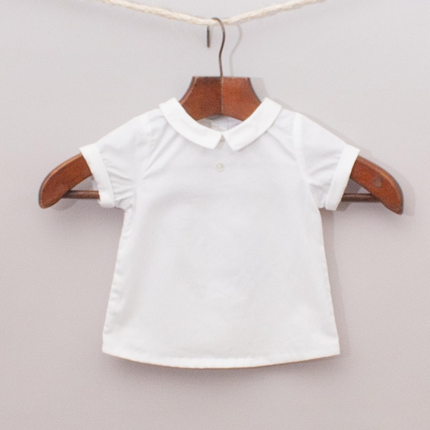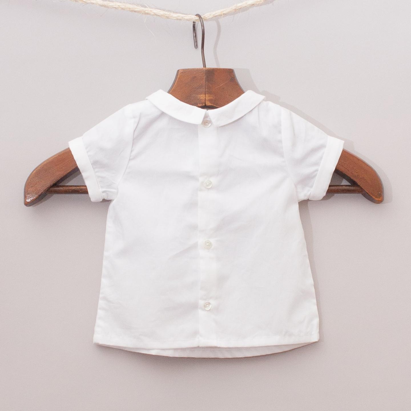 Jacadi "brand new with tags" white cotton short sleeve shirt with rolled sleeves and full button down back closure