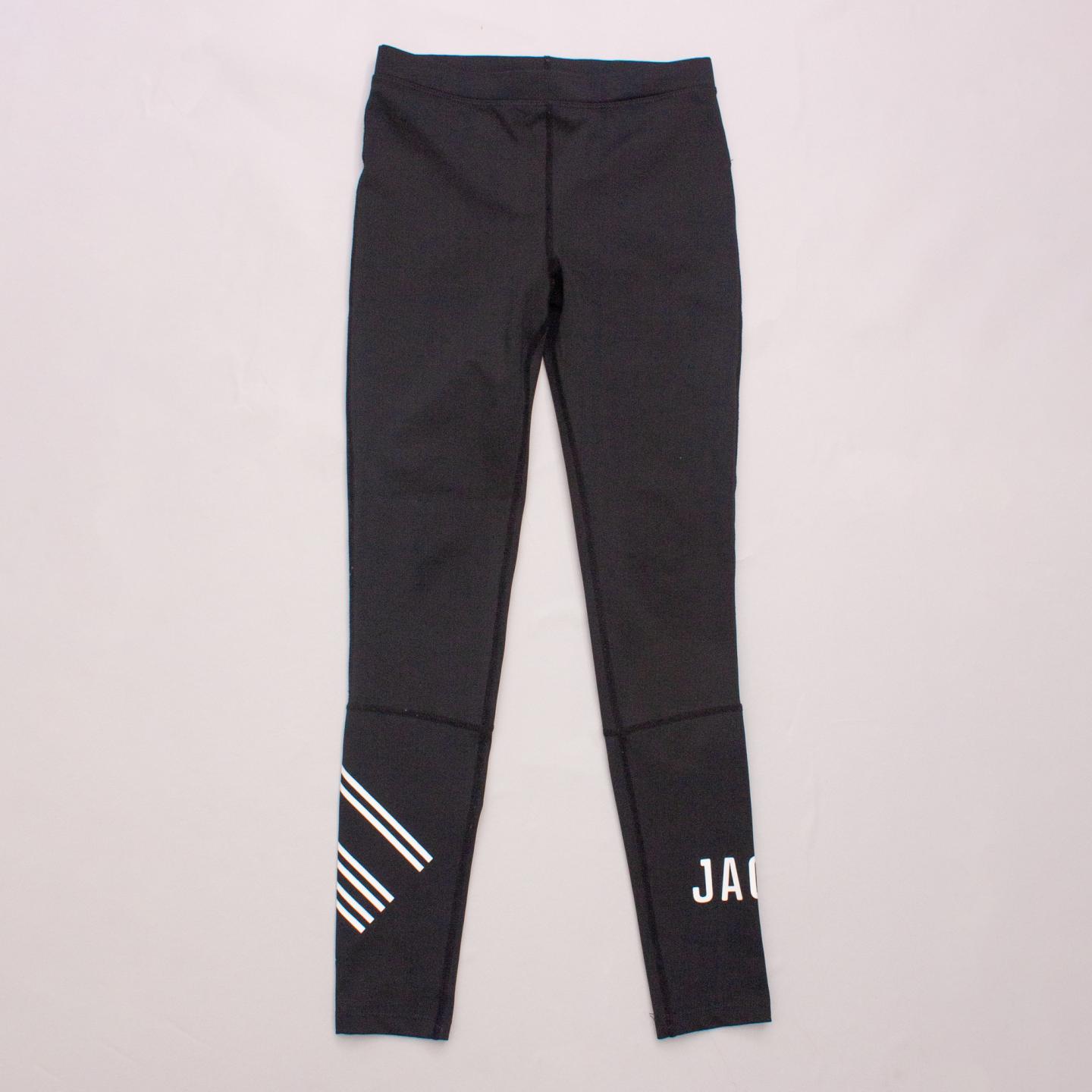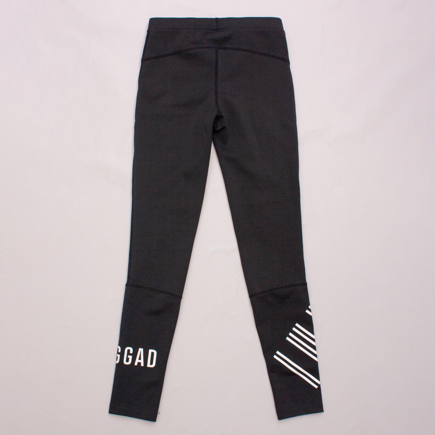 Jagged black compression tights with white printed logo and stripes and drawstring waistband
