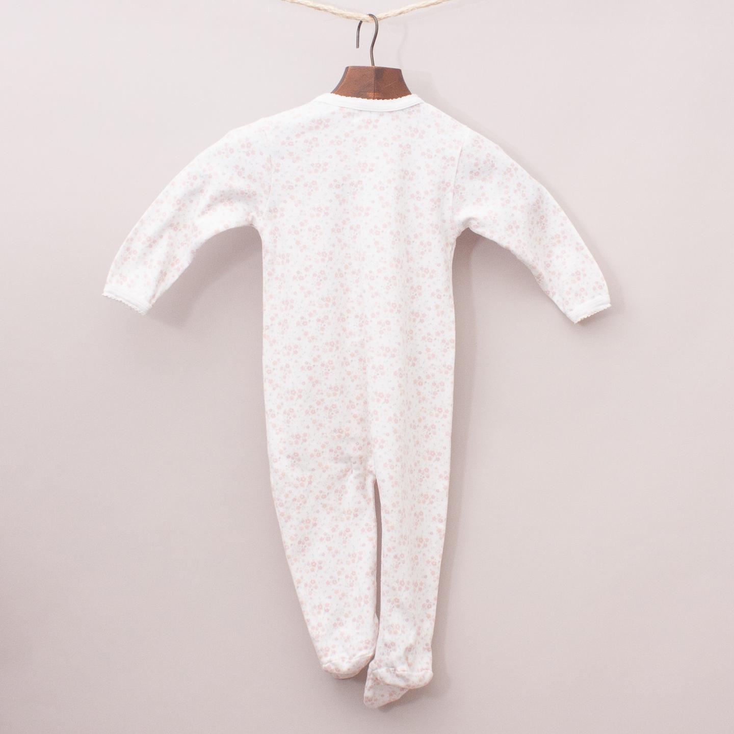 Jamie Kay white and pastel floral patterned, long sleeve romper with built in booties and zip up front *100% Organic Cotton