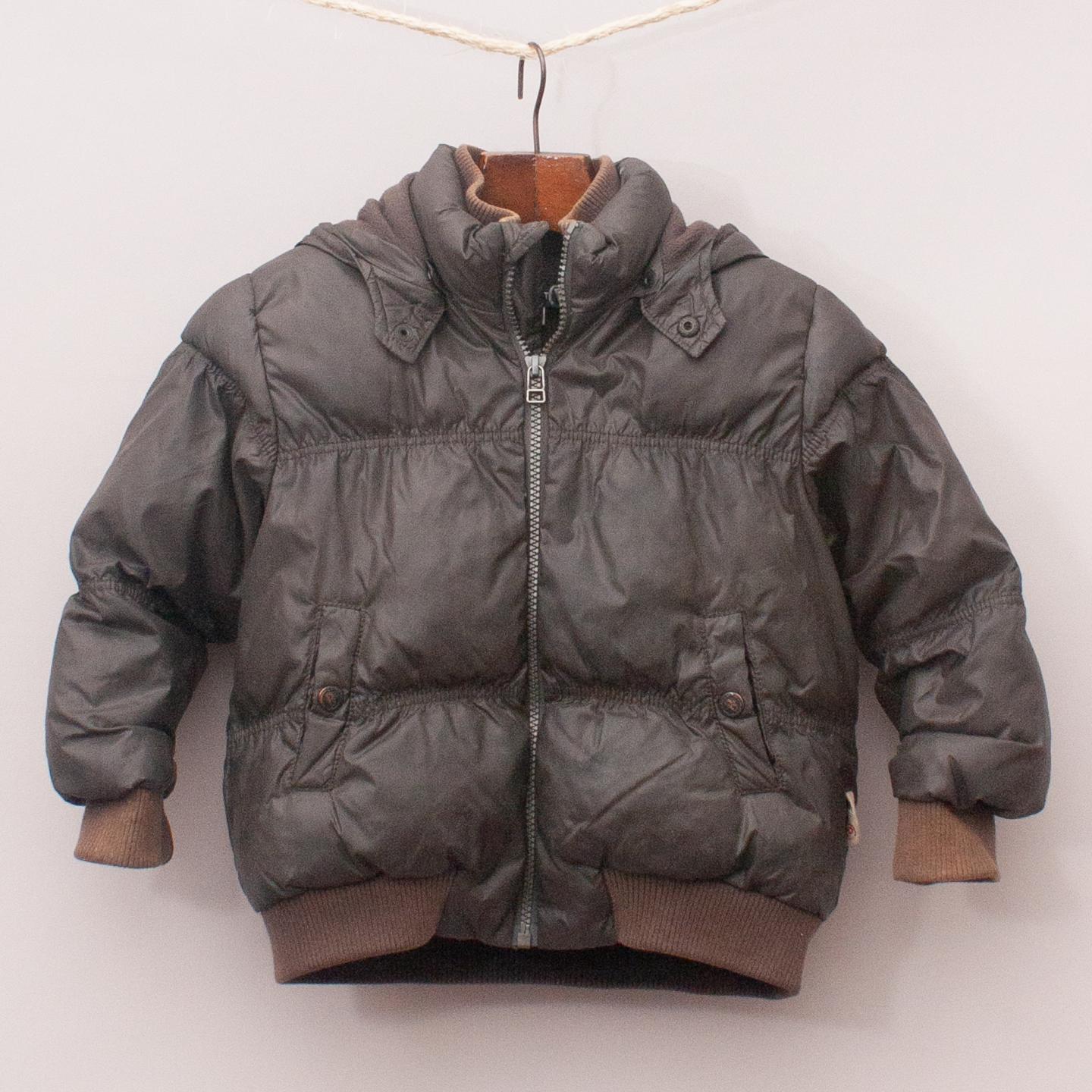 Jean Bourget khaki padded jacket with two front pockets, removable hood and full zip up front *100% Polyamide