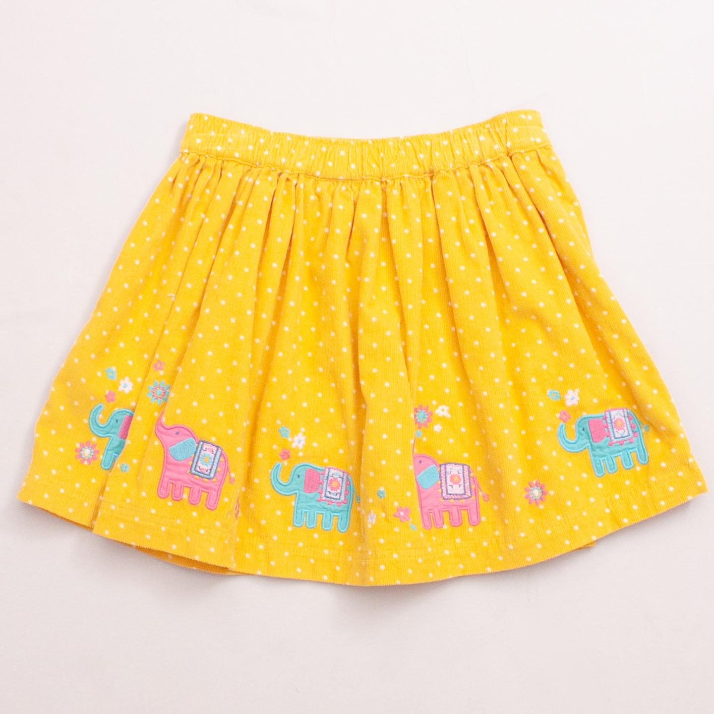 Jojo Maman Bebe yellow corduroy skirt with embroidered elephants throughout, gathered skirt and elastic waistband *100% Cotton