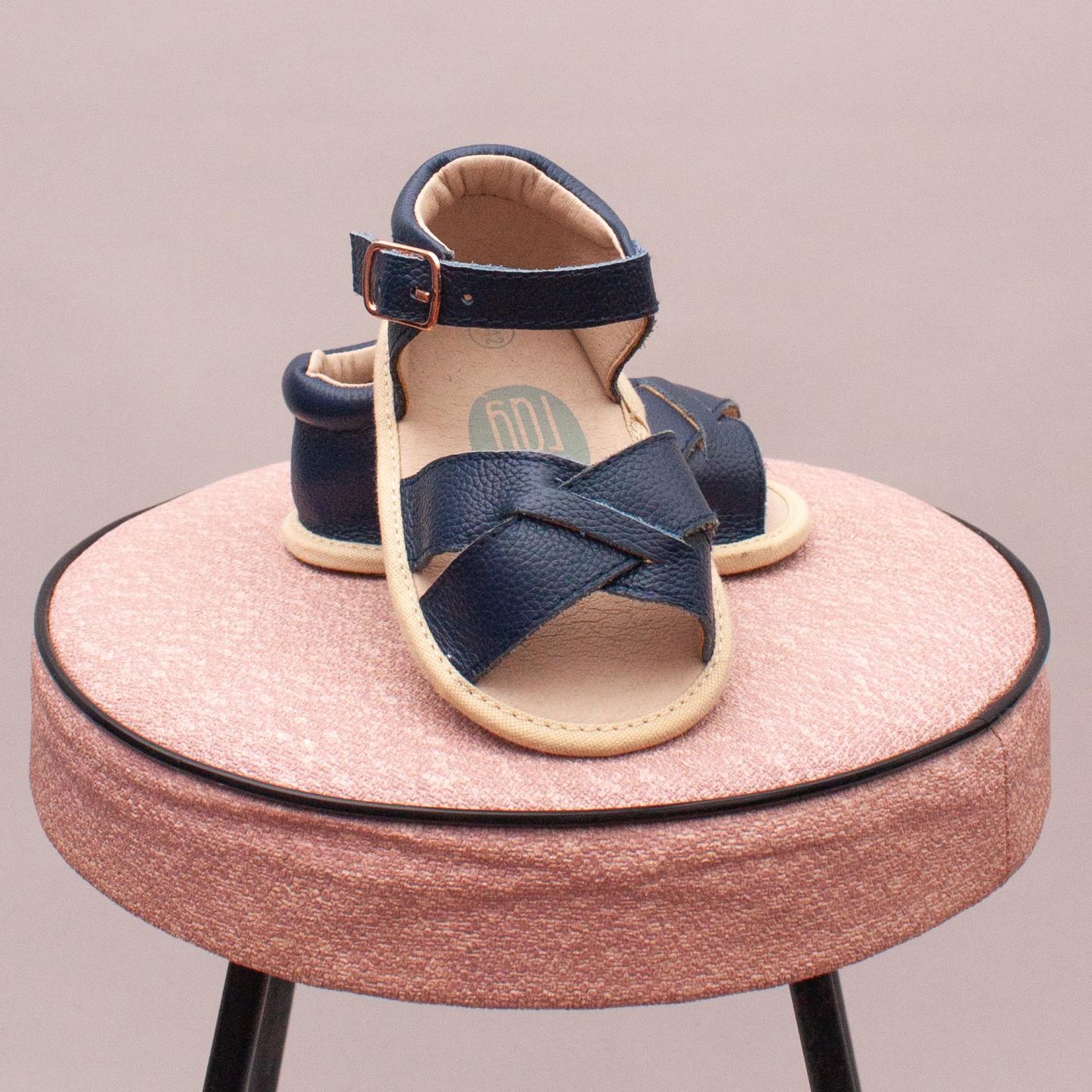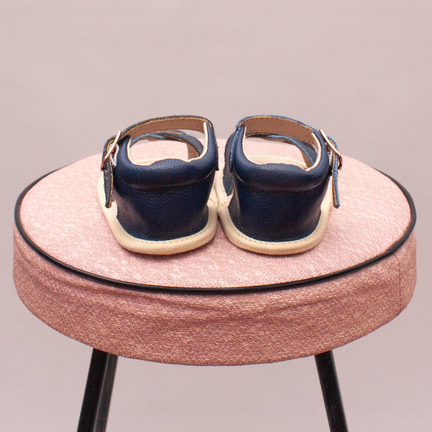 Just Ray "brand new in bag" navy blue leather sandals with rose gold buckles and strong fabric soles - Size 6-12Mths