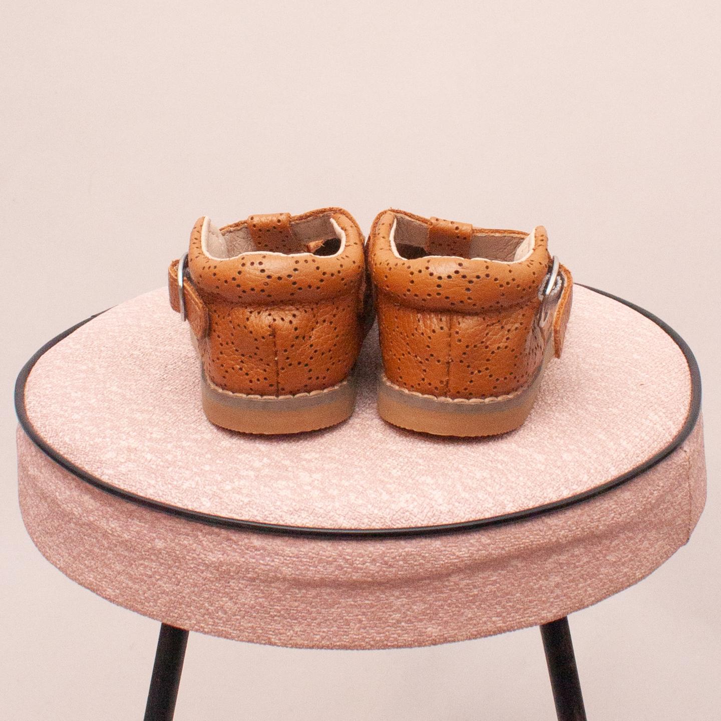 Just Ray brown leather perforated shoes with single buckle closure and sturdy rubber soles - Size 18-24Mths approx.