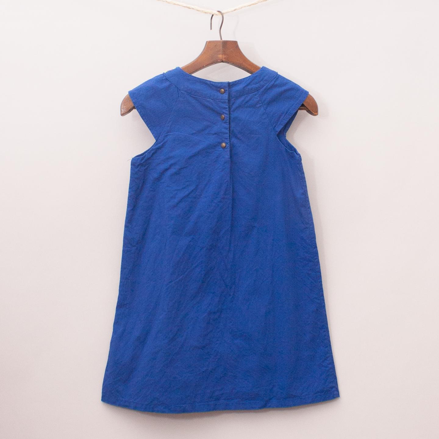 Kaisely bright blue a-line dress with embroidered neckline and button back closure *100% Cotton
