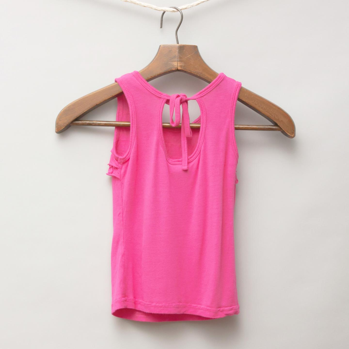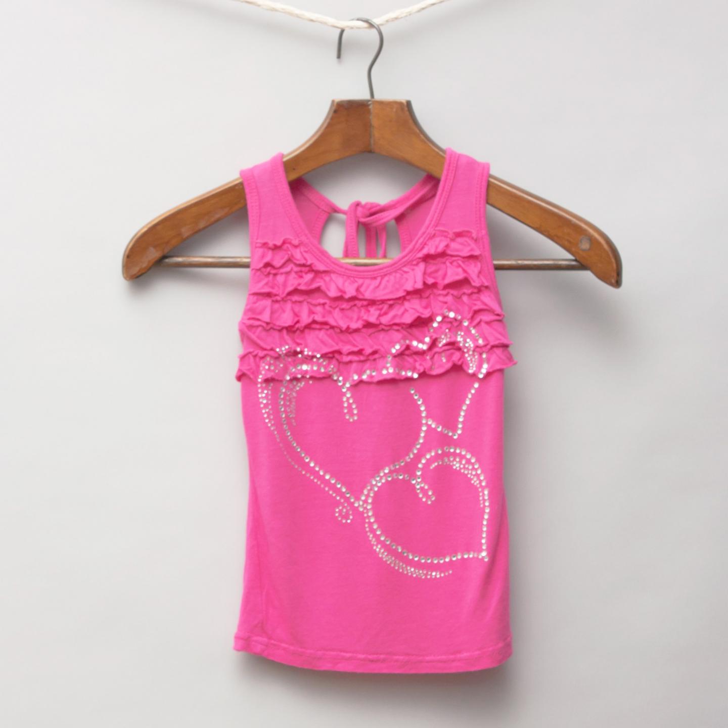 Kids Stuff hot pink singlet top with ruffle details on front, tie at back and diamante hearts on front