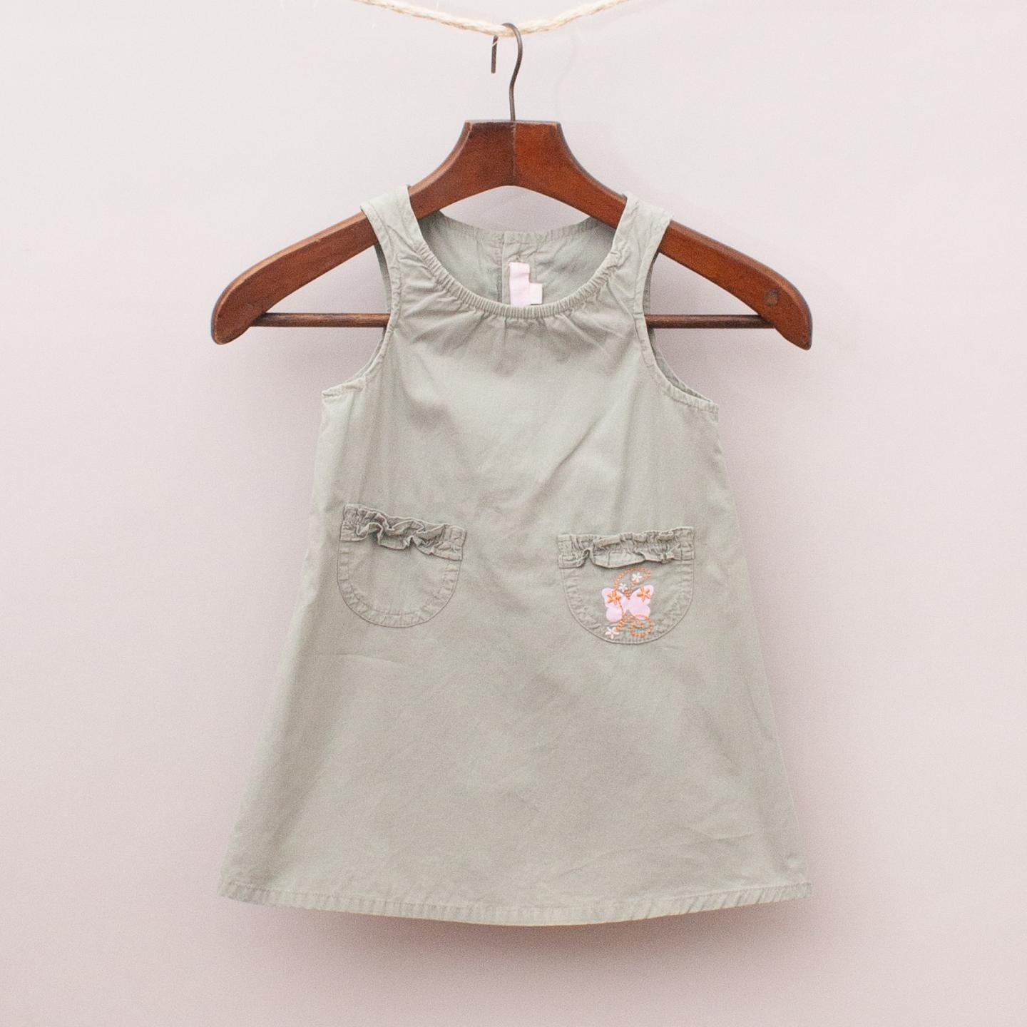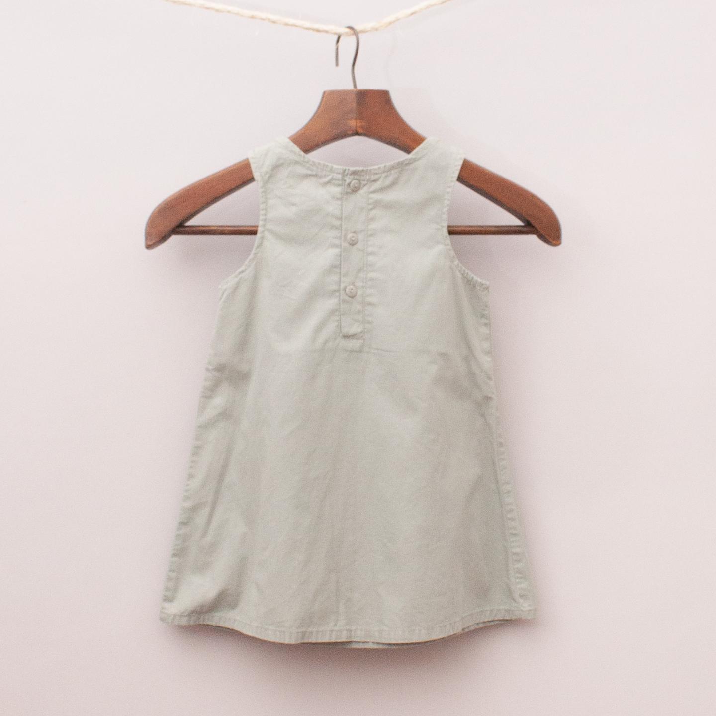 Kimbaloo light green dress with two front pockets, ruffle details and button down back *100% Cotton
