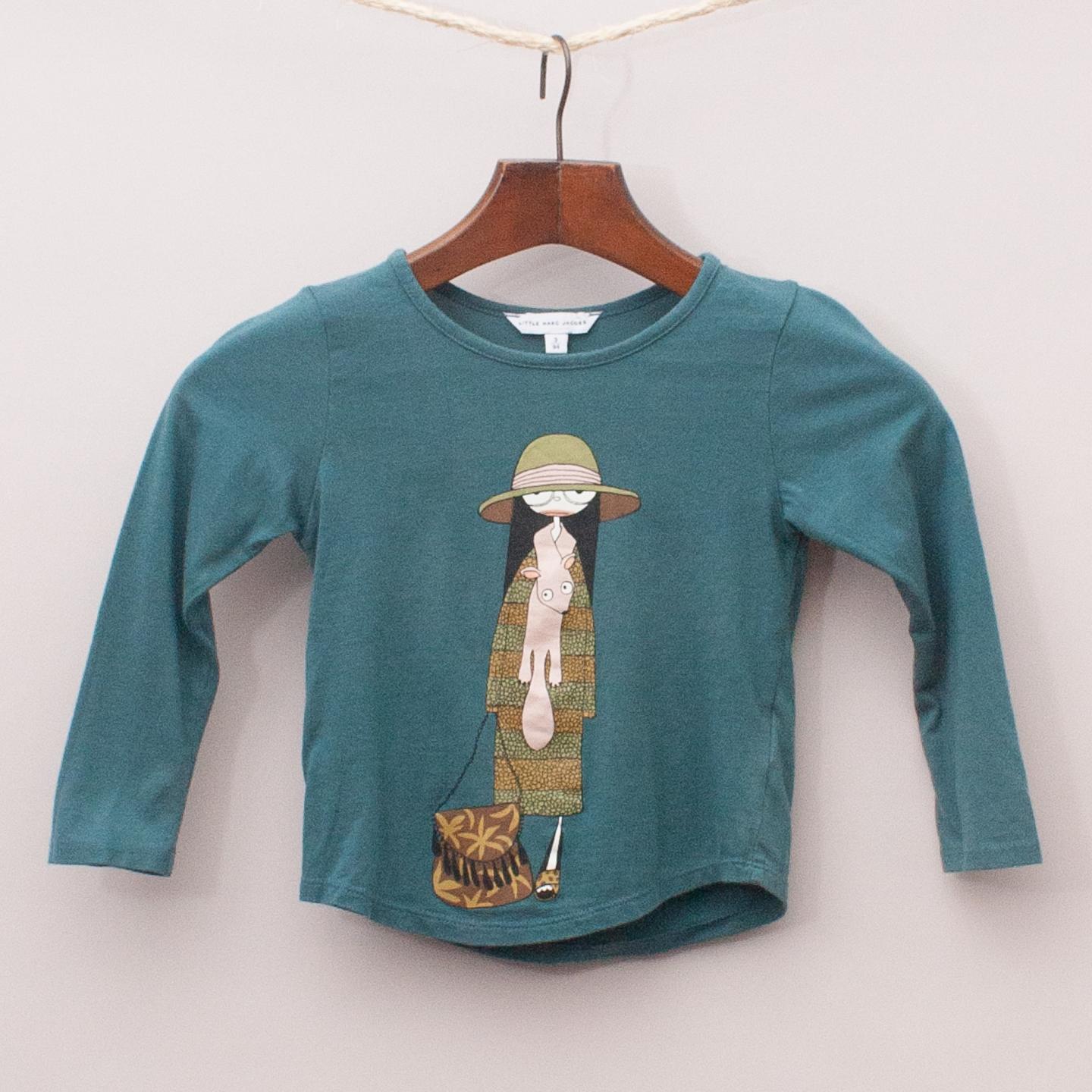 Little Marc Jacobs emerald green long sleeve top with printed girl on the front *50% Cotton, 50% Modal