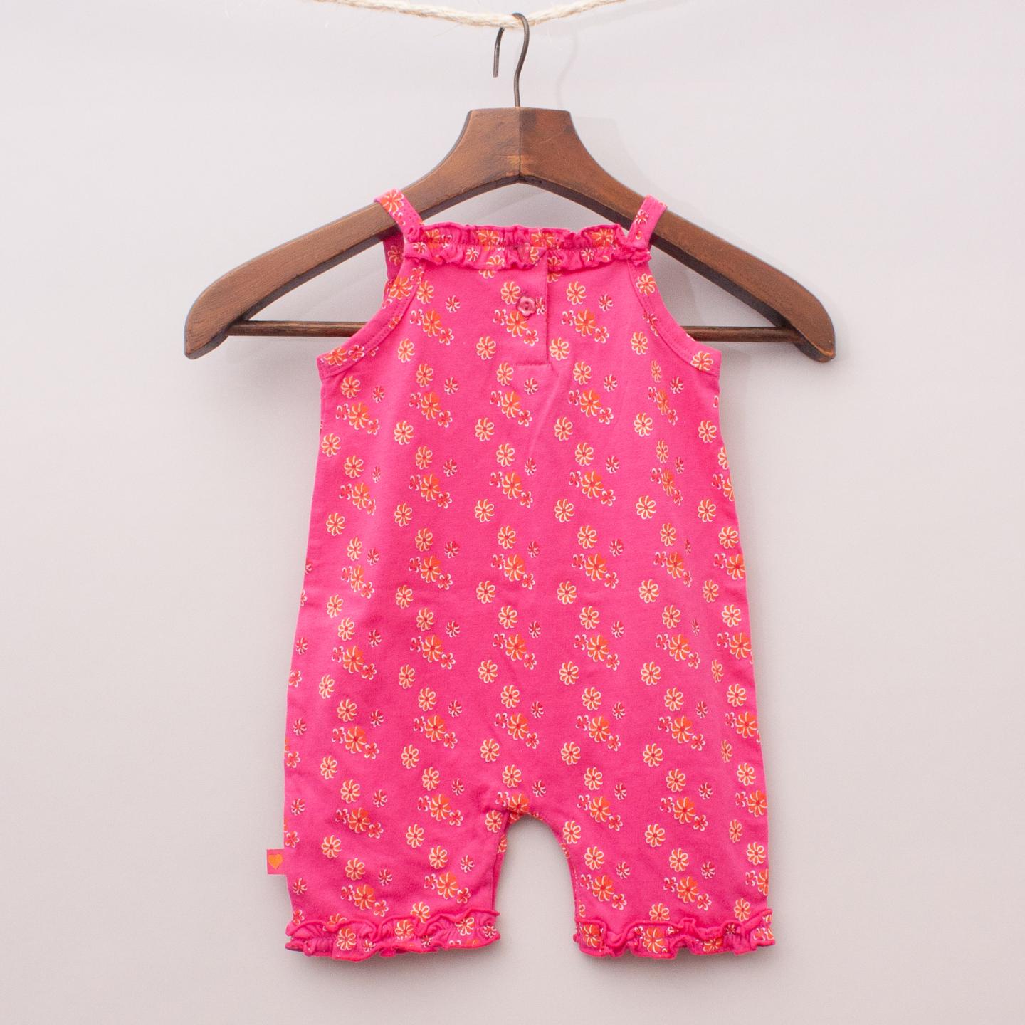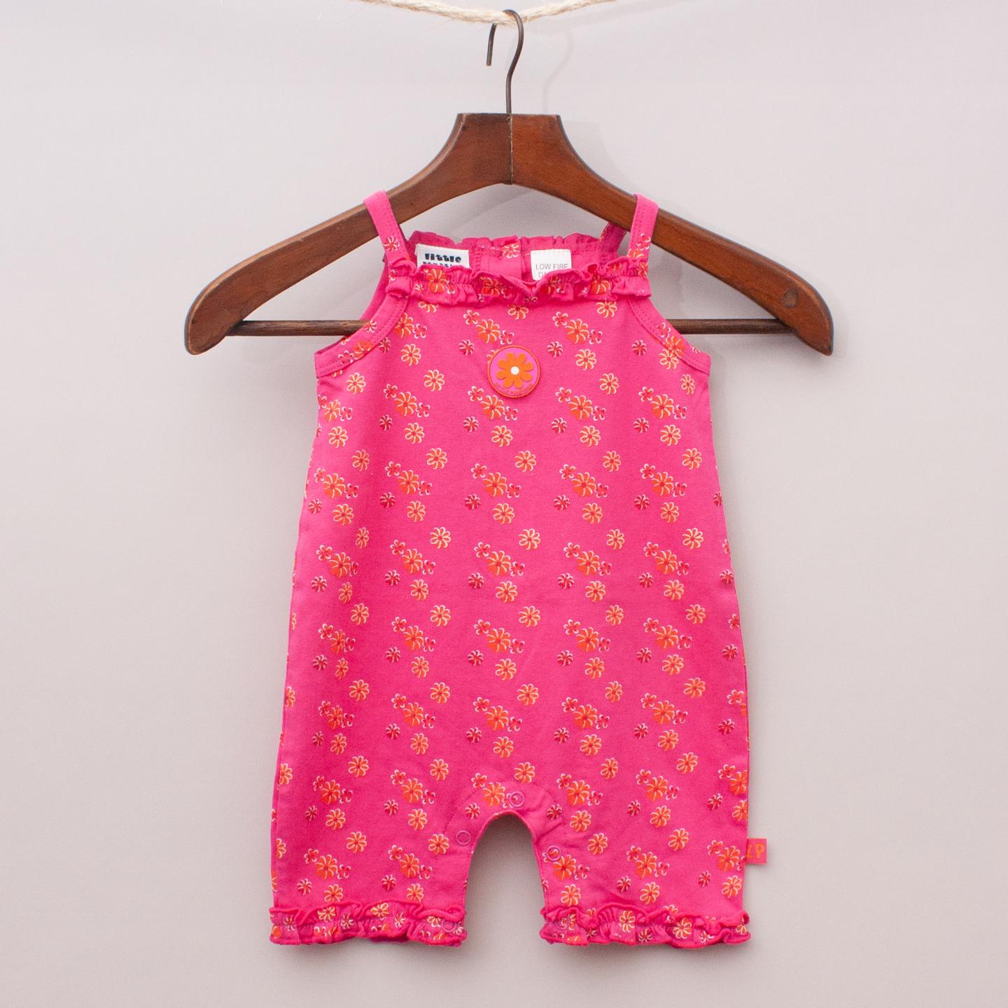 Little Pumpkins "brand new with tags" hot pink floral patterned romper with ruffle details and logo patch on the front *100% Cotton