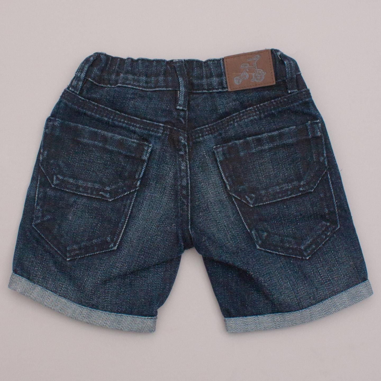 Little Rivet distressed denim shorts with front and back pockets, belt loops and button/zip fastening