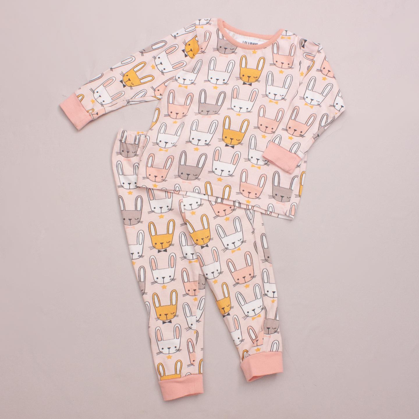 Lollidays pastel and rabbit pattern long sleeve pyjama set with pink cuffs and elastic waistband *100% Cotton