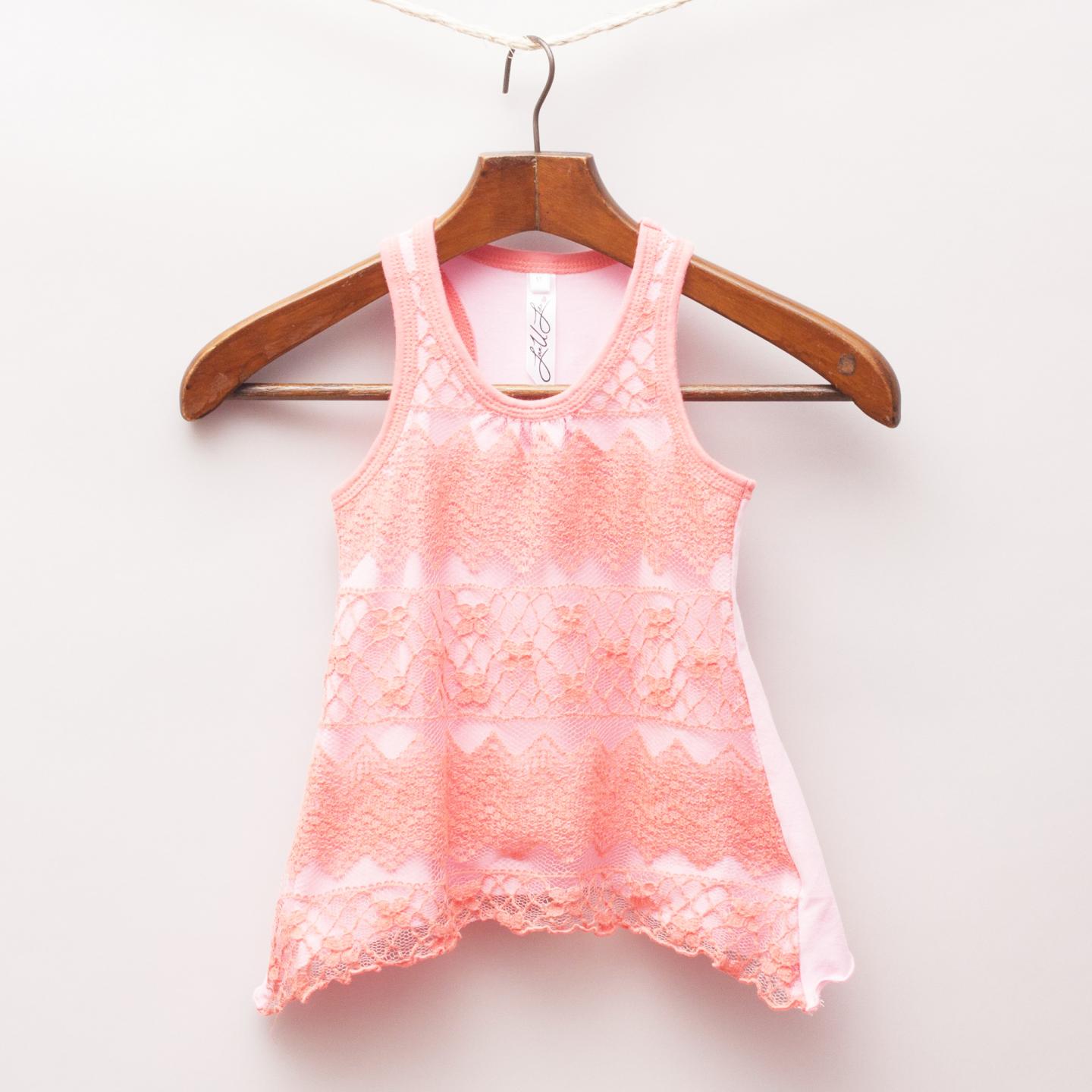 Love You Lots orange and pink tank top with paneled lace overlay