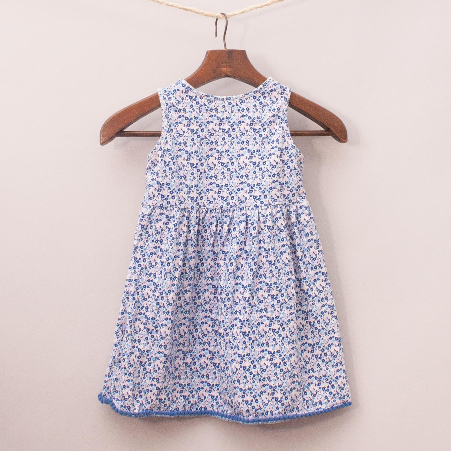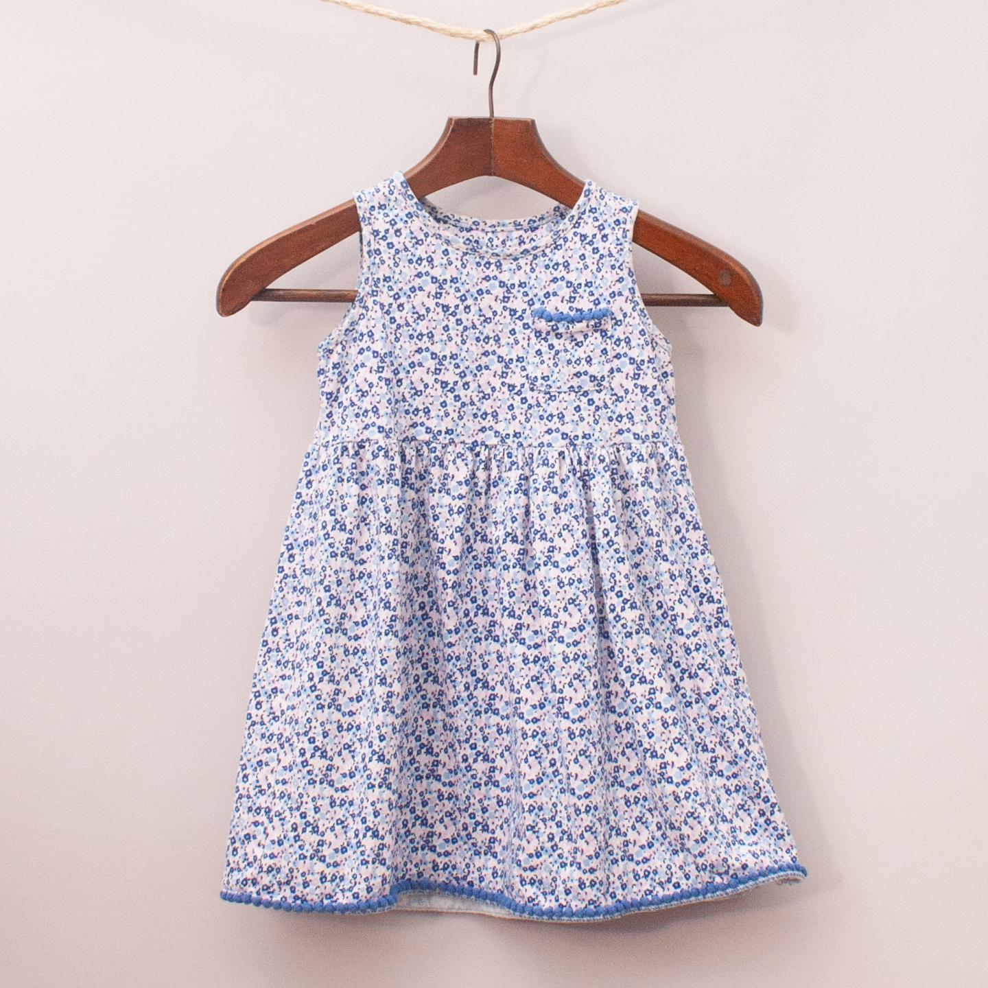 M&S white, blue and purple floral dress with blue trim and small single pocket *100% Cotton