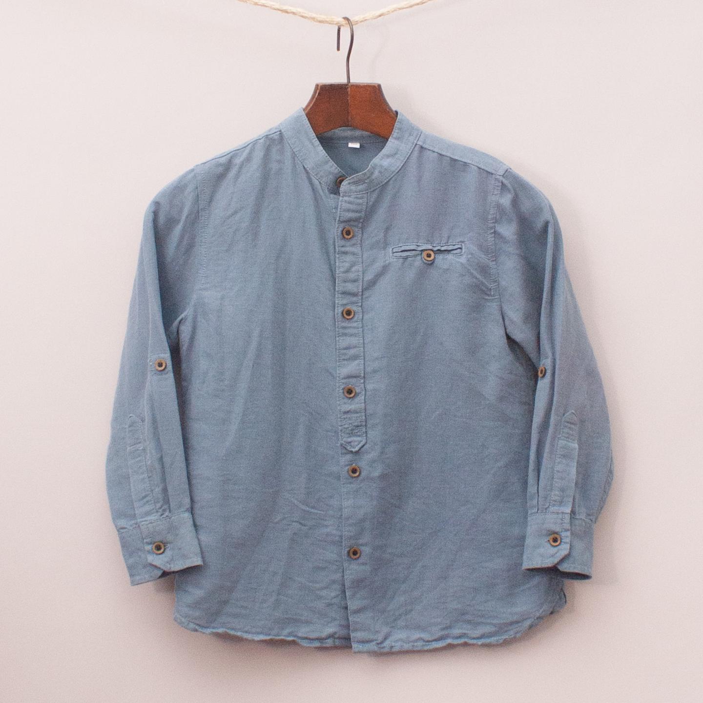 M&S blue linen blend shirt with single front pocket and full button down front *60% Linen, 40% Cotton