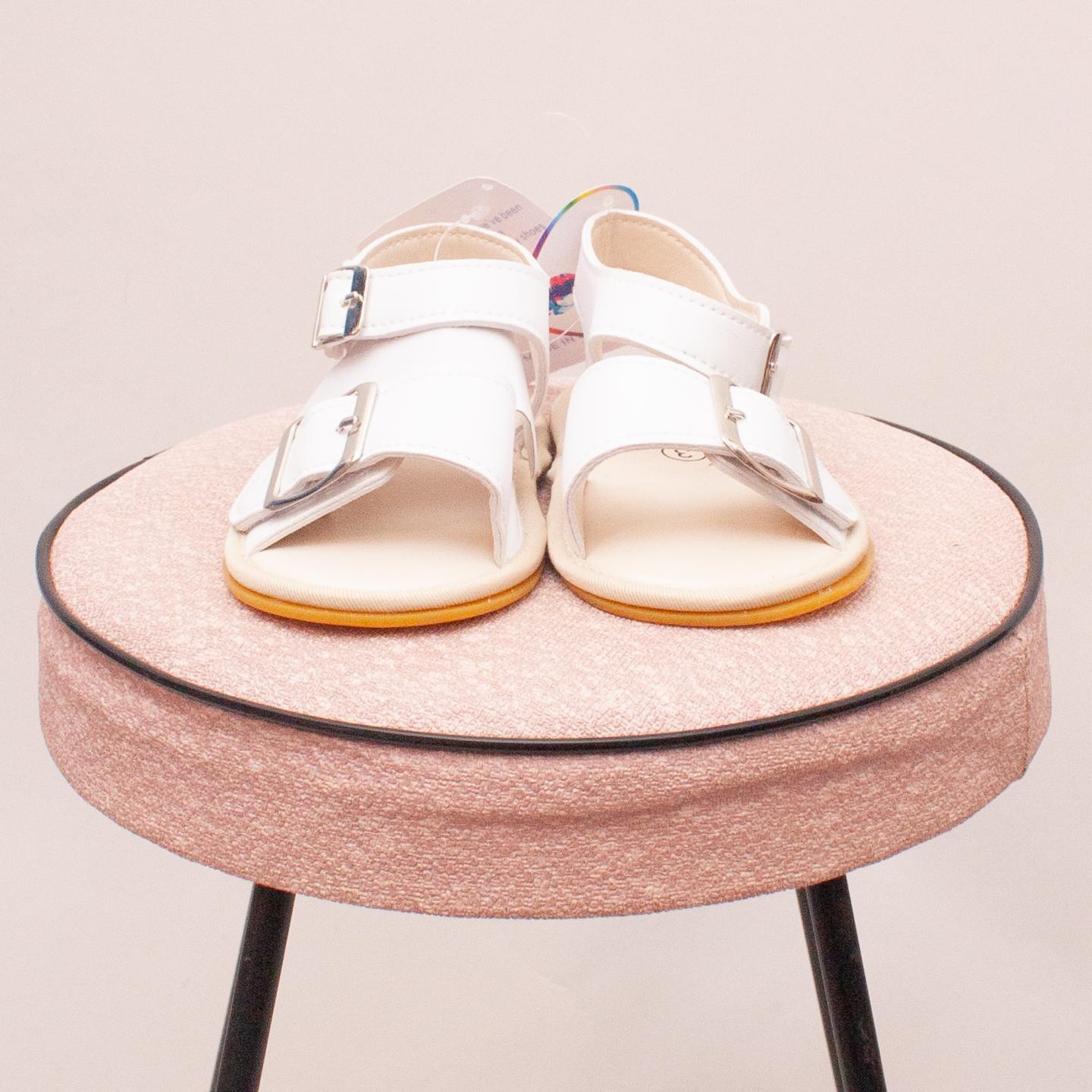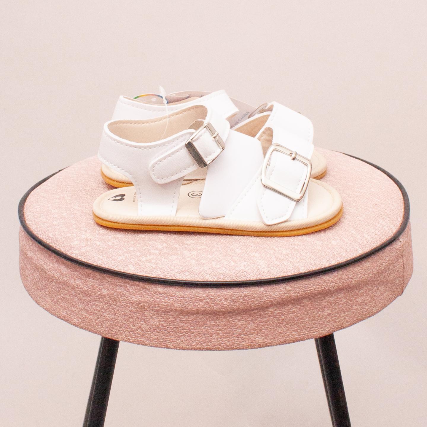 Magic Prewalker "brand new with tags" white baby shoes with two buckle closure and thin rubber soles - Size 0-12Mths approx.