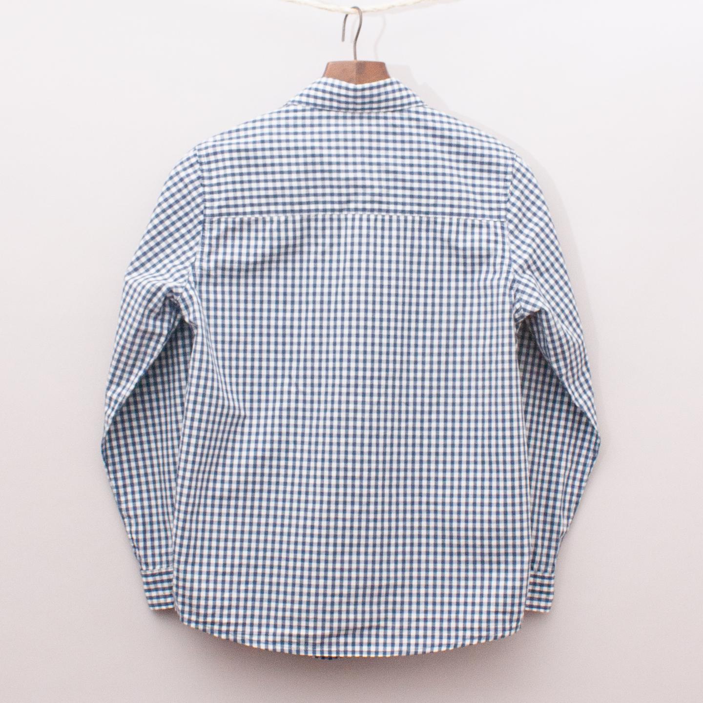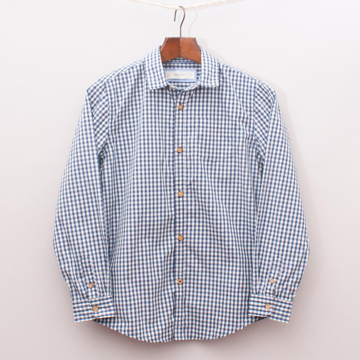 Mango blue and white gingham check shirt with single front pocket and full button down front