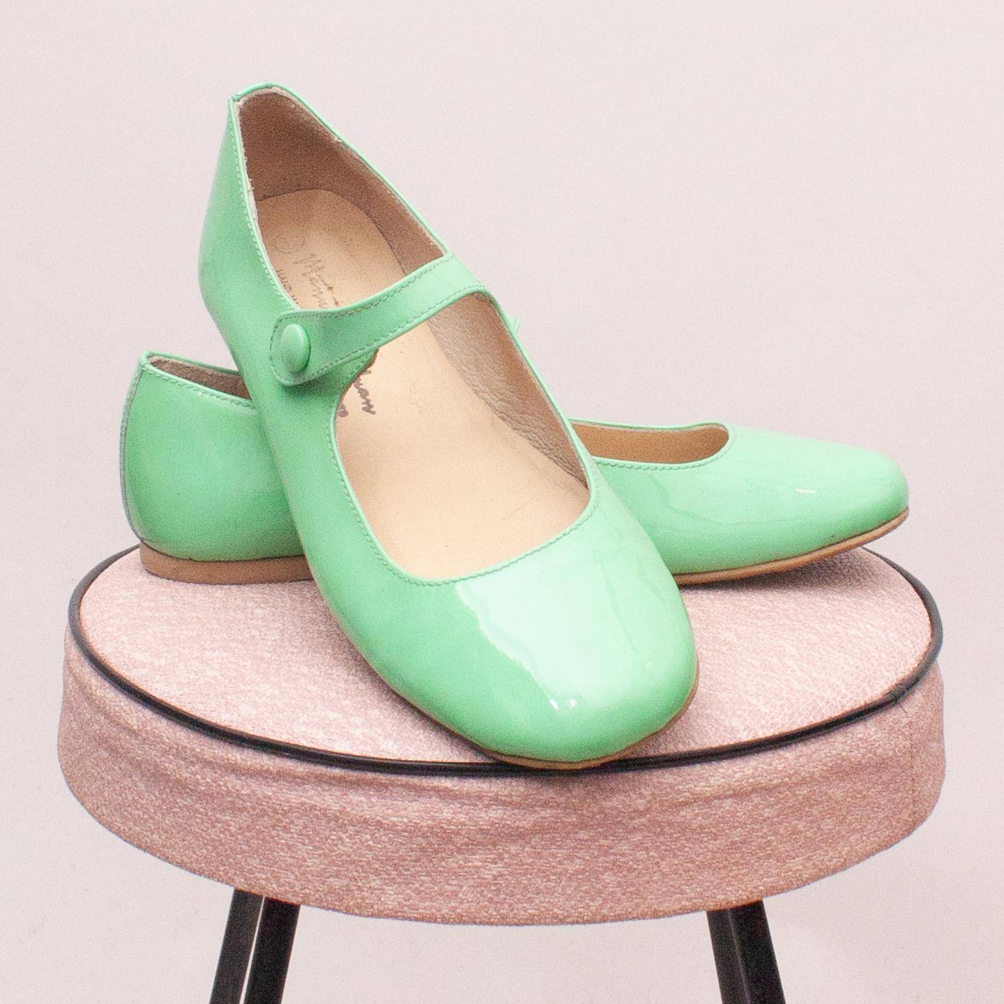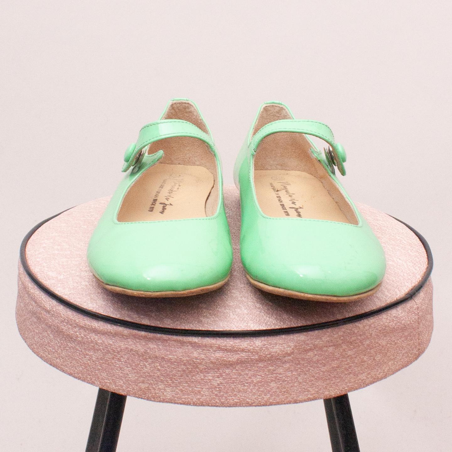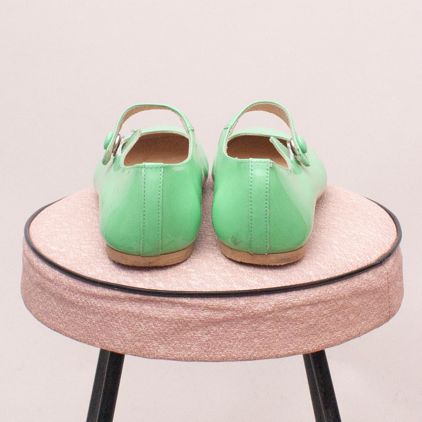 Manuella De Juan green patent leather shoes with single button strap and thin rubber soles - Size EU 32 (Age 6 approx.)