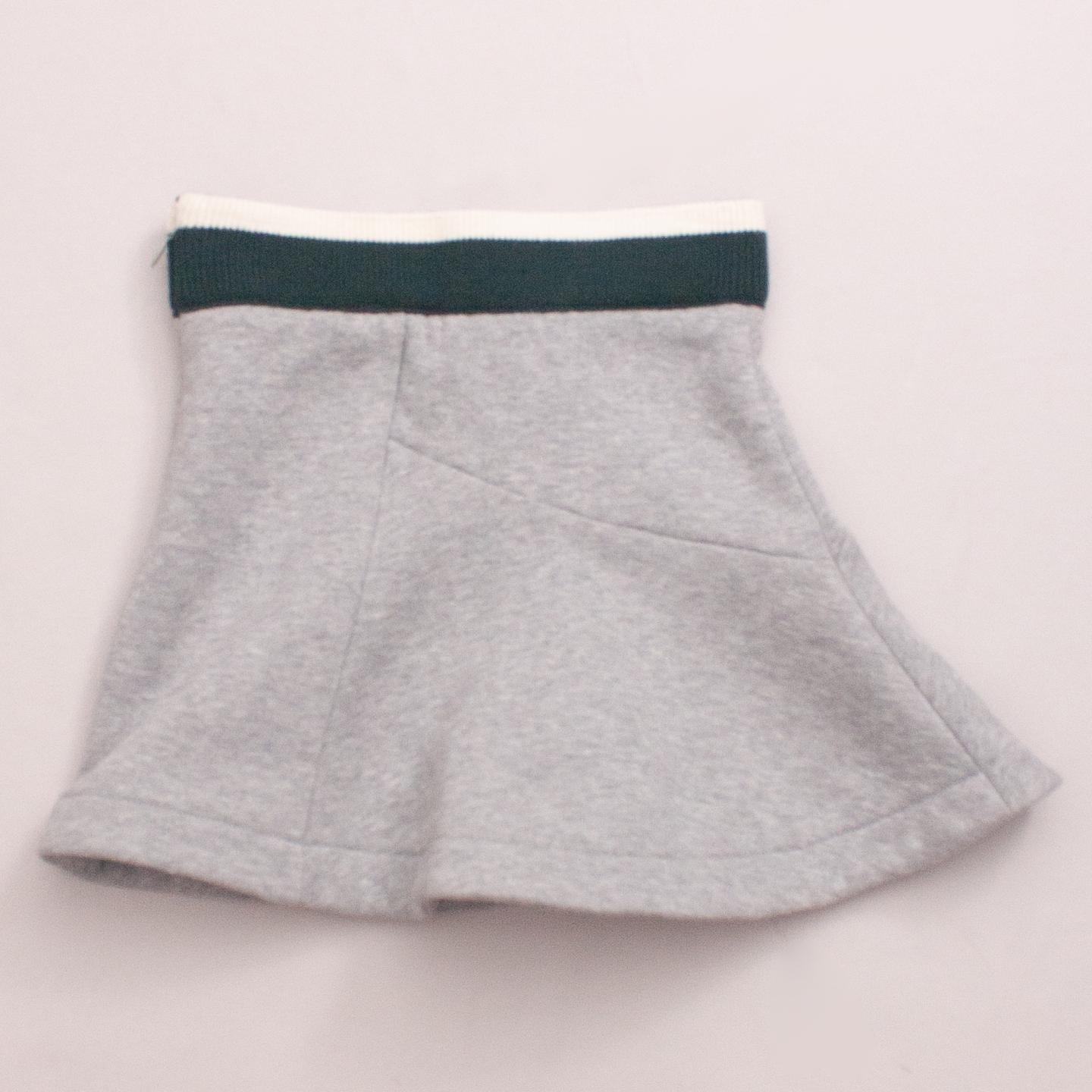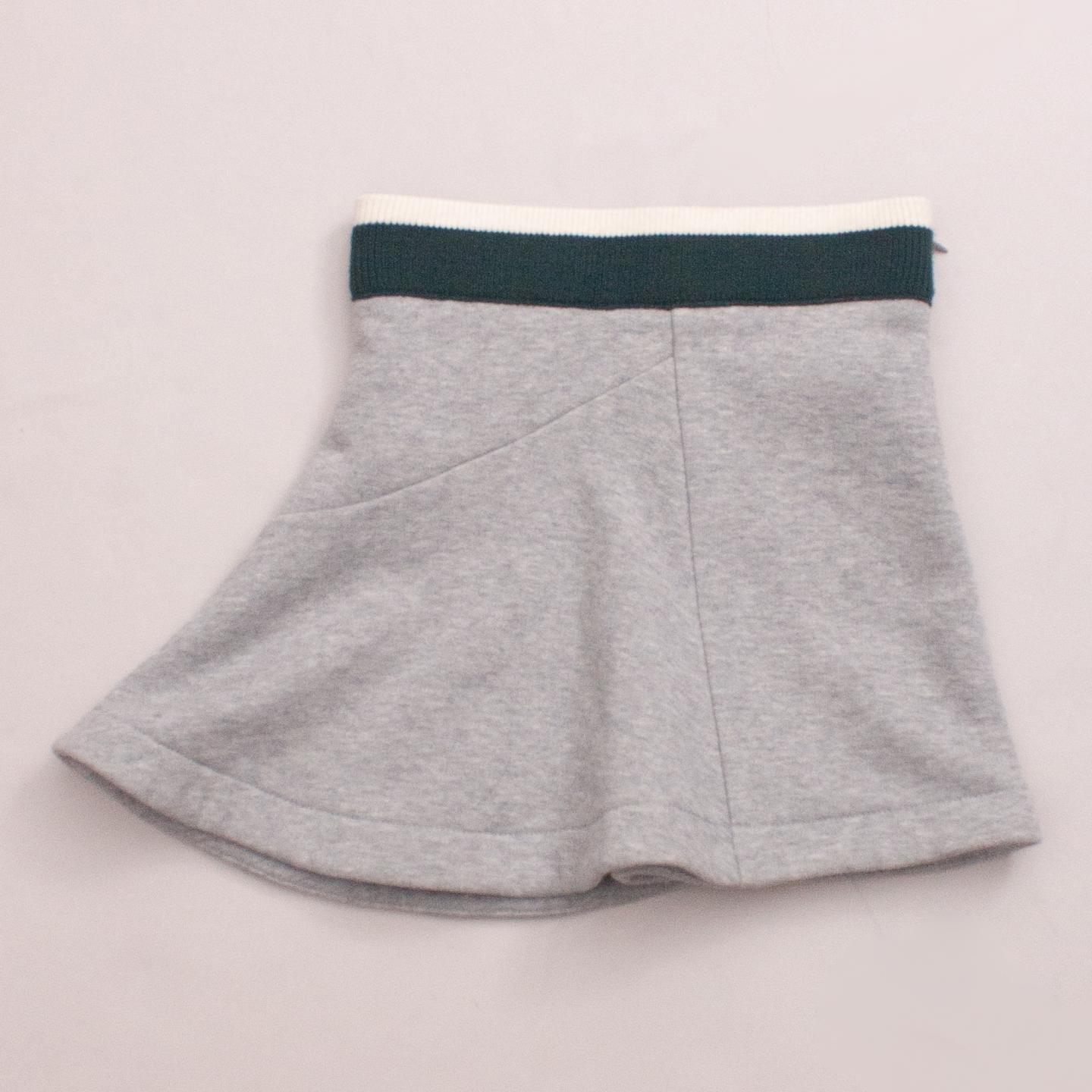 Marni grey circle skirt with wide green and cream waistband and zip closure *100% Cotton