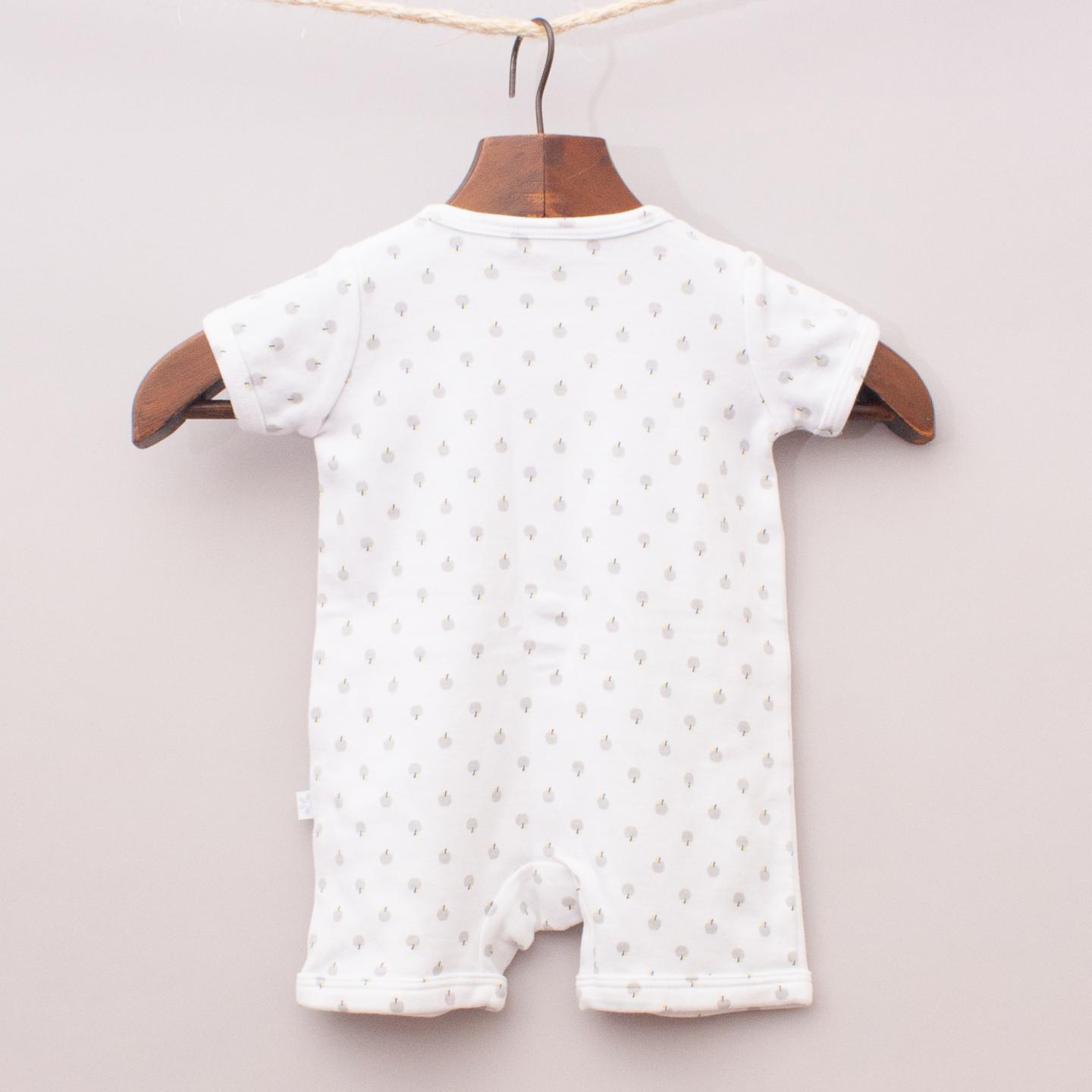 Marquise "brand new without tags" white short sleeve romper with apple pattern throughout and button down front *100% Cotton