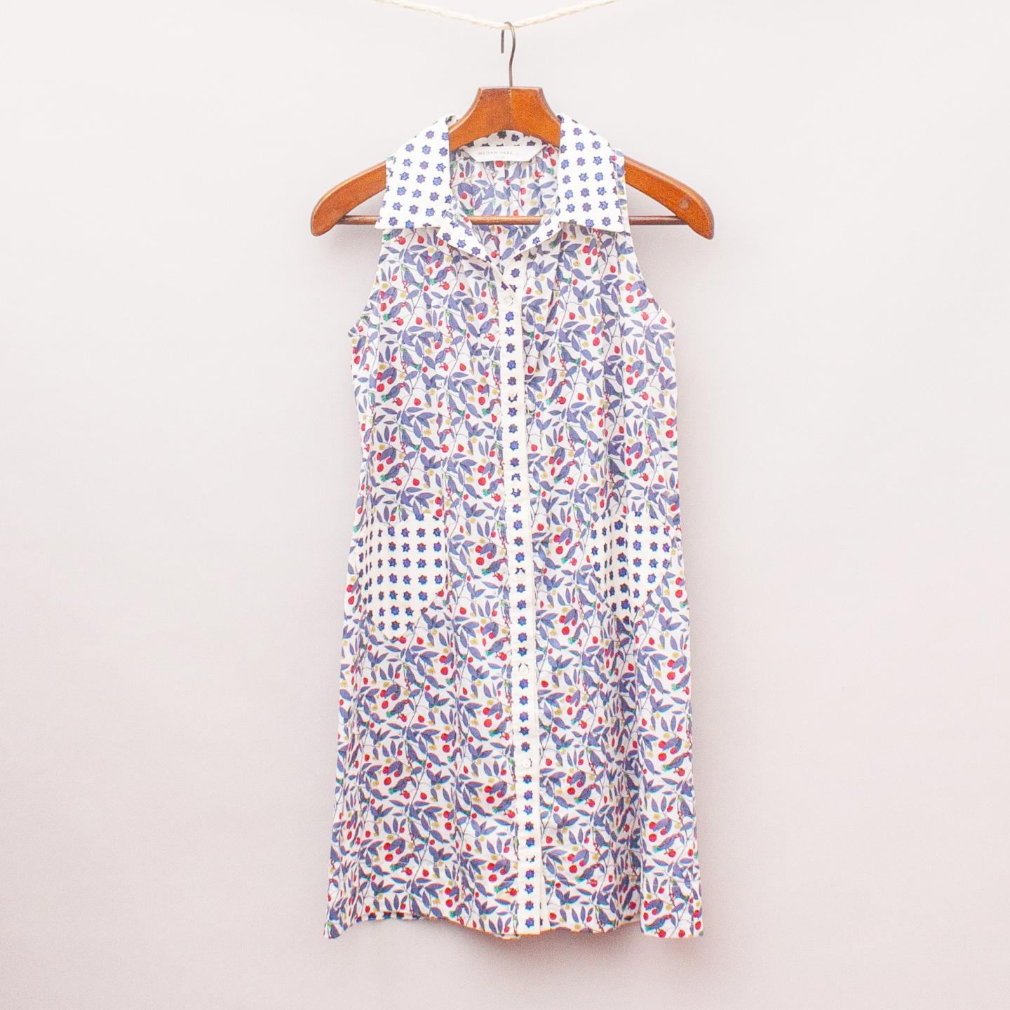 Megan Park Italian Capri inspired print shirt dress with two heart shaped front pockets and full button down front *Small stain along the button line - not very visible