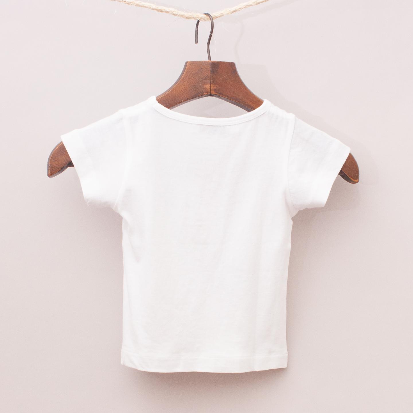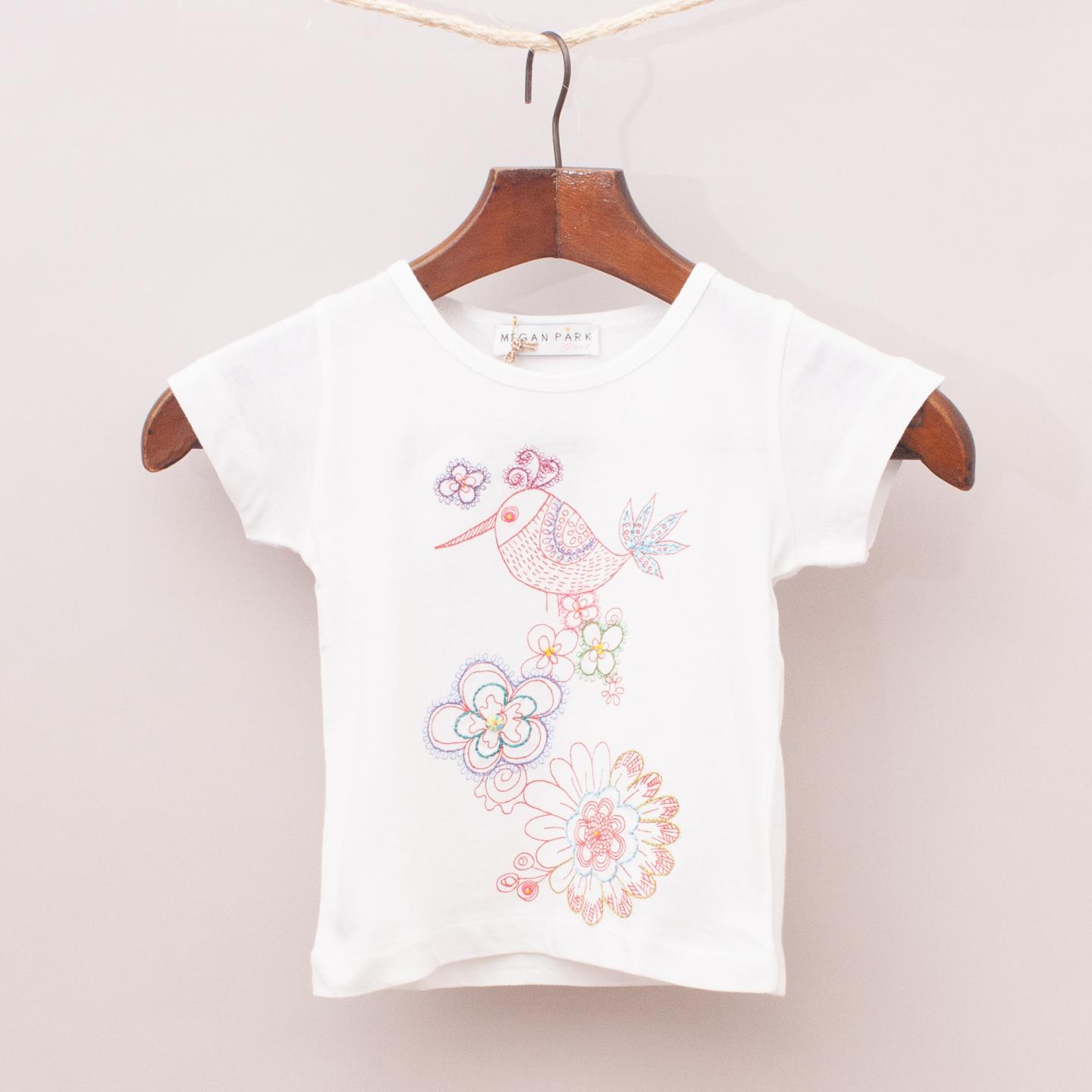 Megan Park "brand new with tags" white t-shirt with embroidered flowers and birds throughout - 100% Cotton