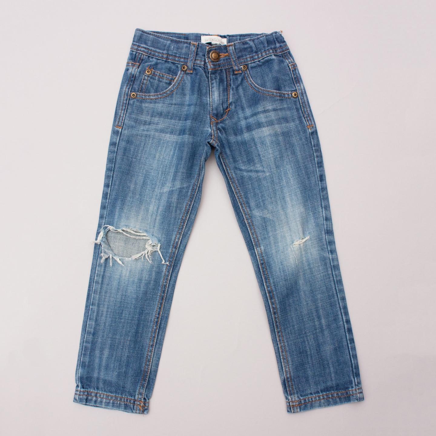 Milkshake distressed denim jeans with front and back pockets, belt loops and button/zip fastening